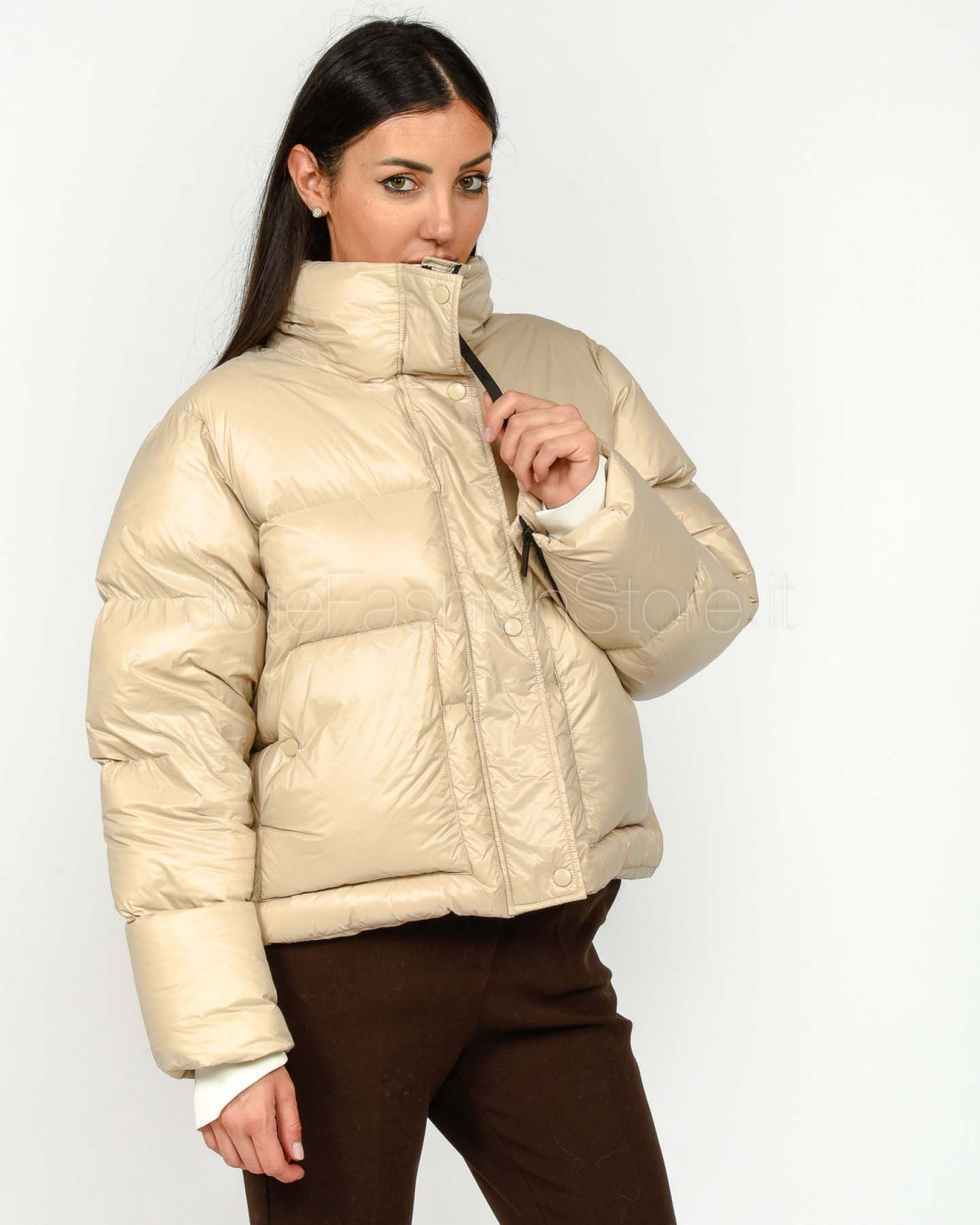 Solo Tre Piumino Con Cappuccio Beige