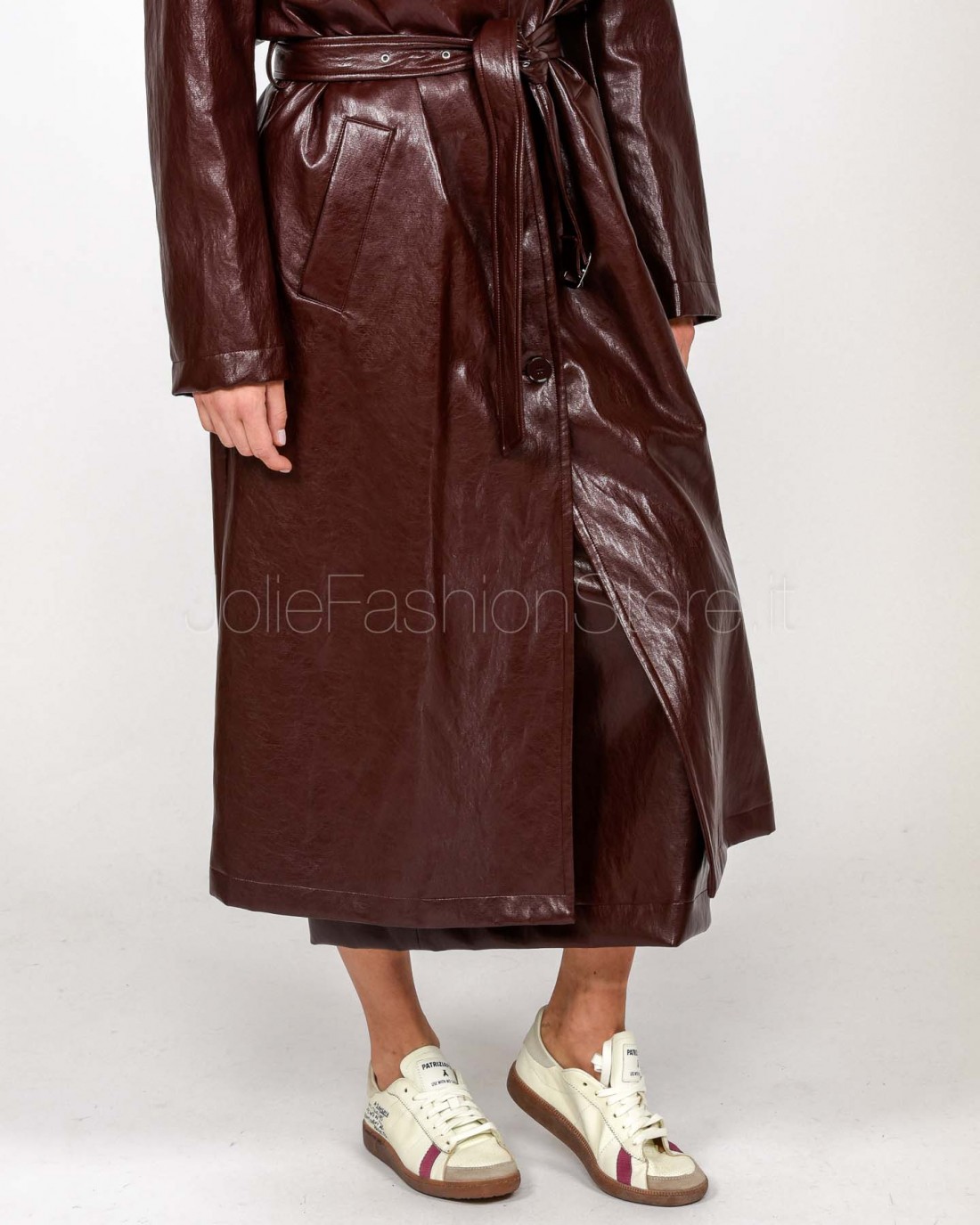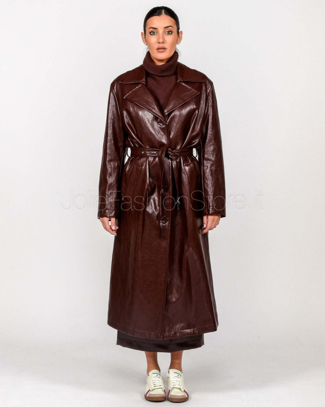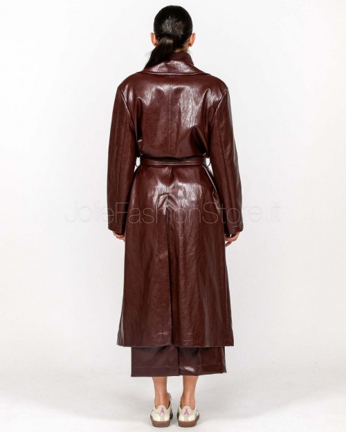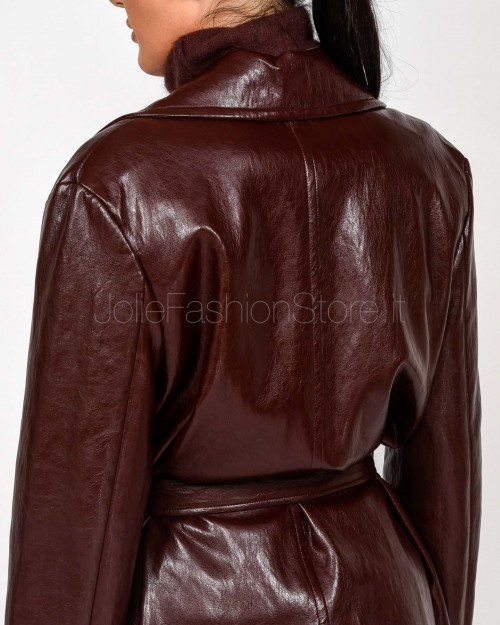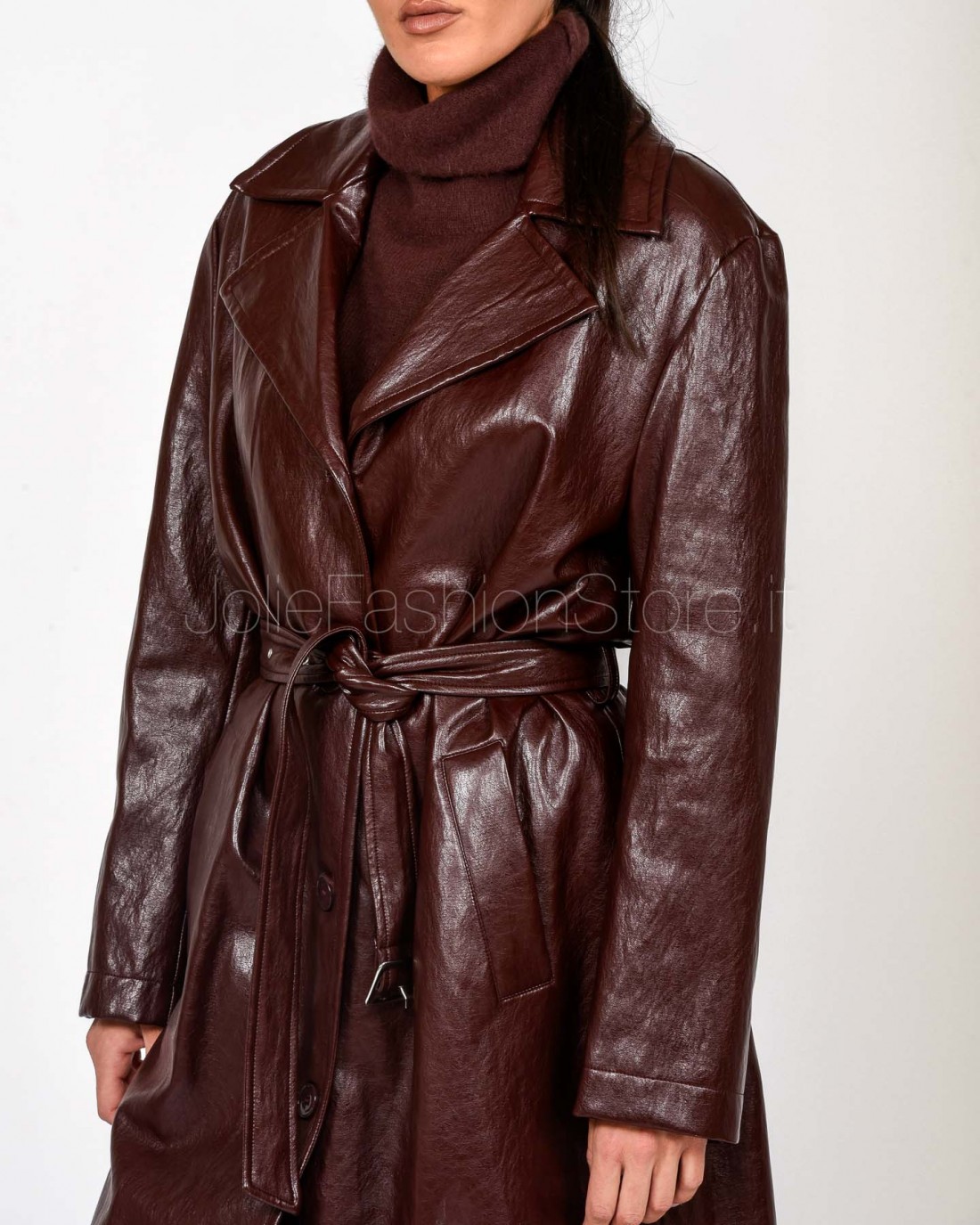 Solo Tre Cappotto Con Cintura in Vernice Bordeaux