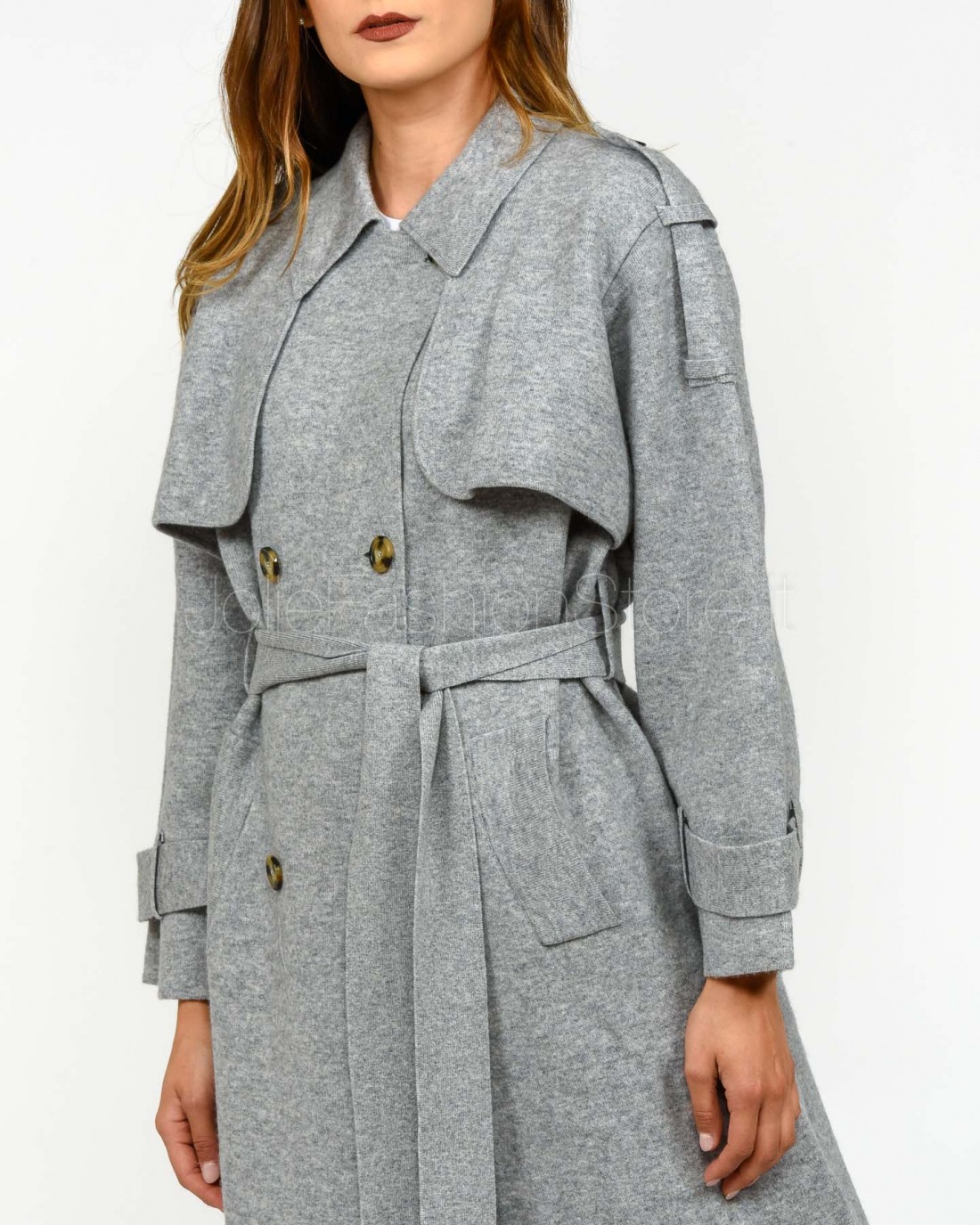 Not Shy Trench in Cashmere Grigio Modello Talia