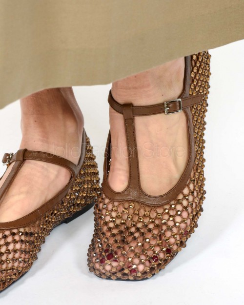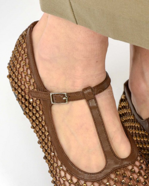 Strategia Ballerina a Rete Con Gancio Strass All Over Cacao