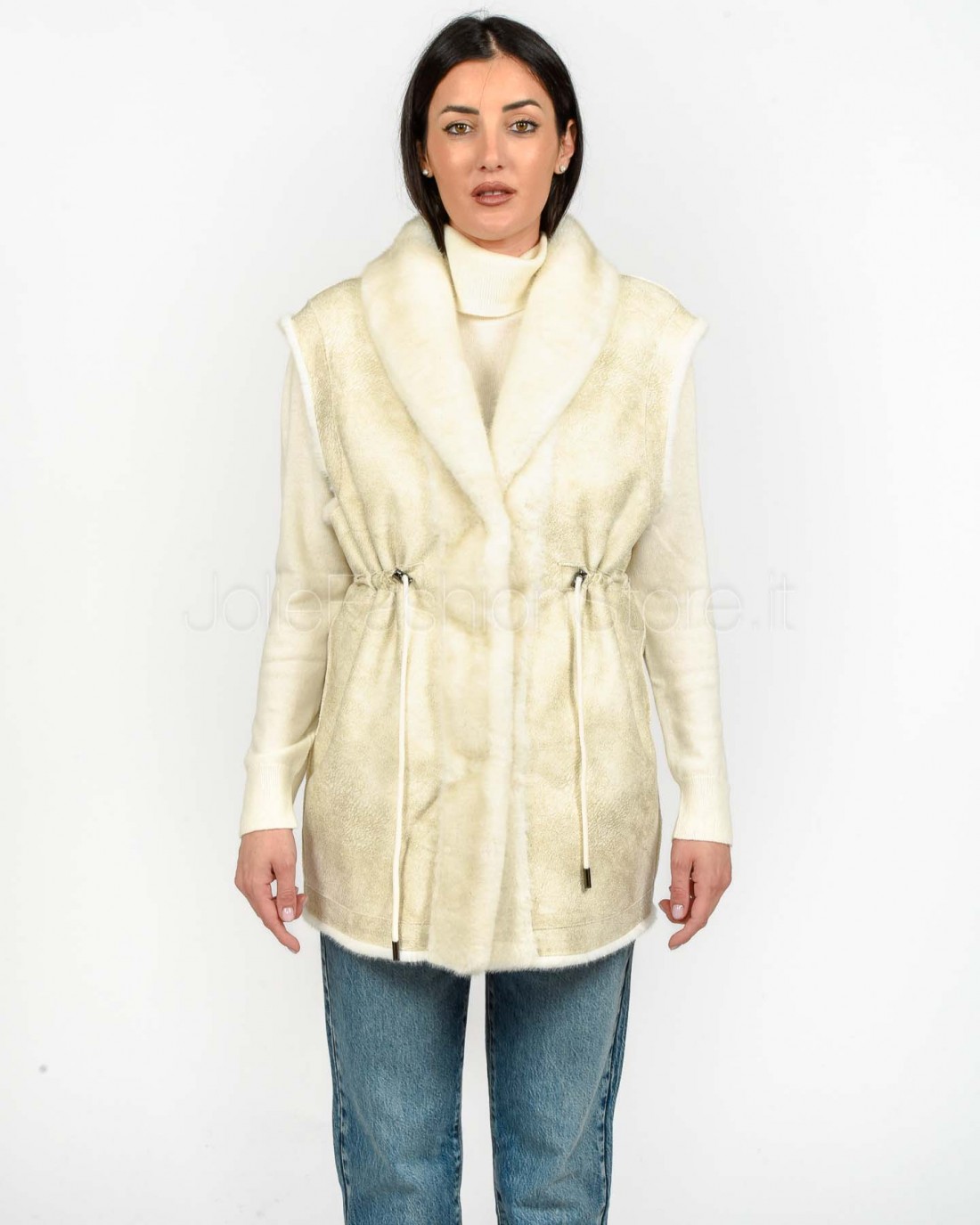 Tavus Milano Gilet Lungo Eco Visone Bianco