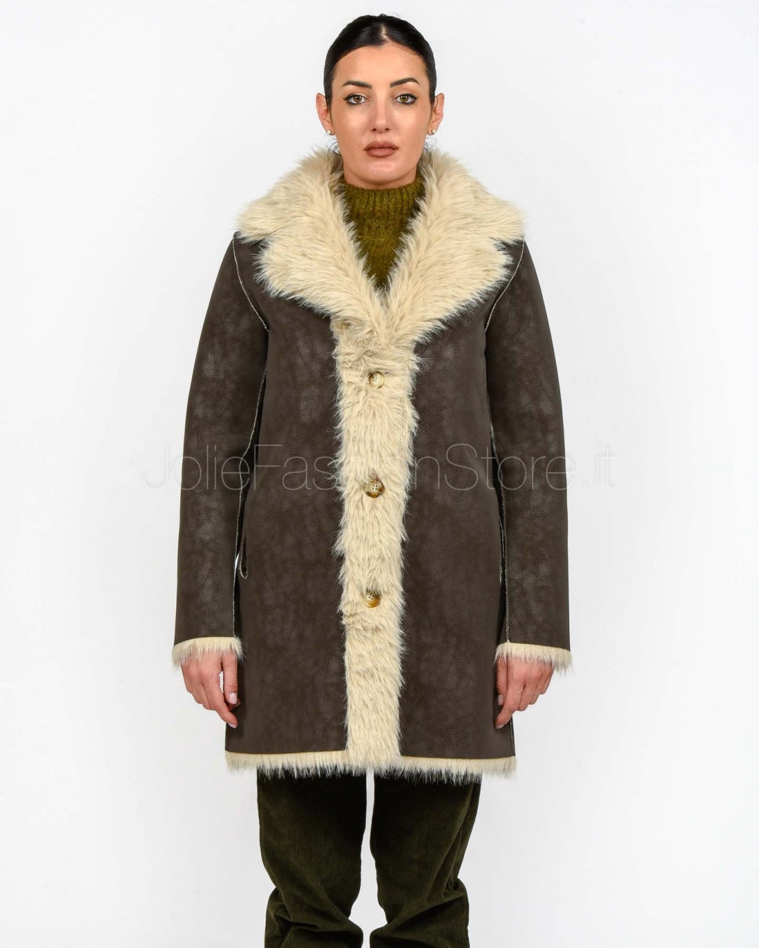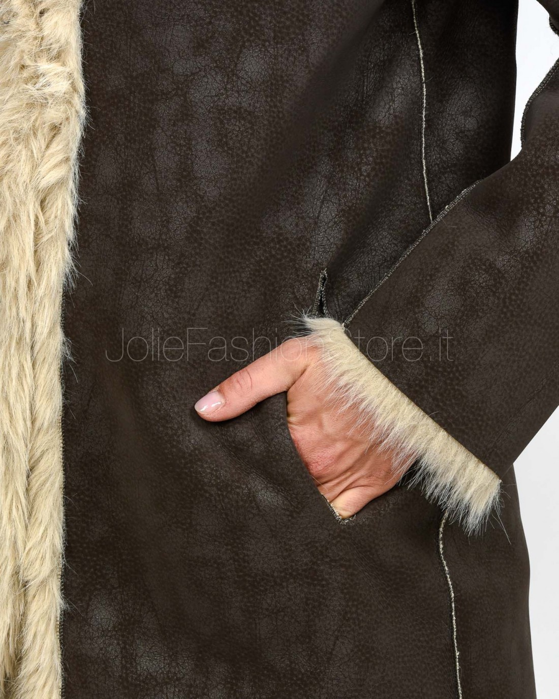 Tavus Milano Cappotto Reversibile Eco Pelliccia Marrone