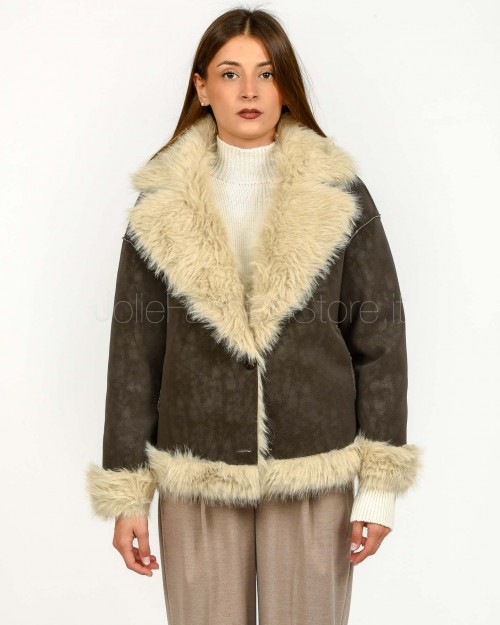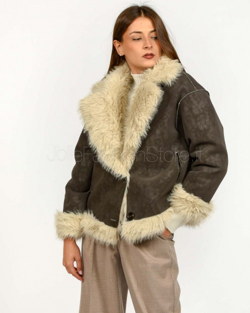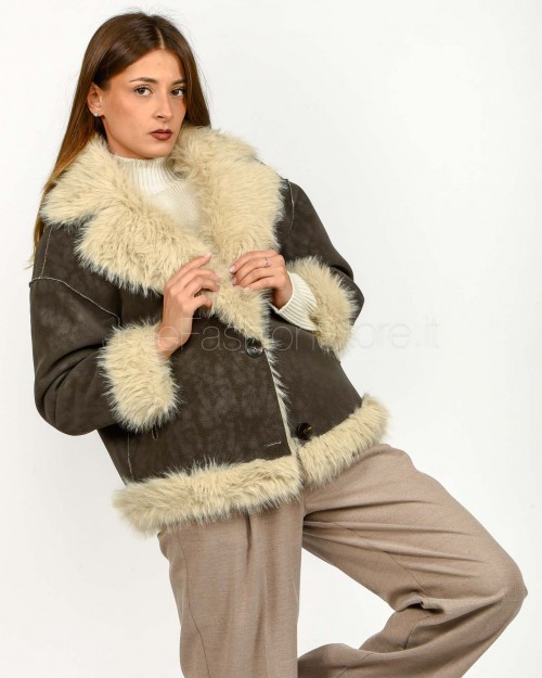 Tavus Milano Giacca Reversibile Eco Pelliccia Dark Brown