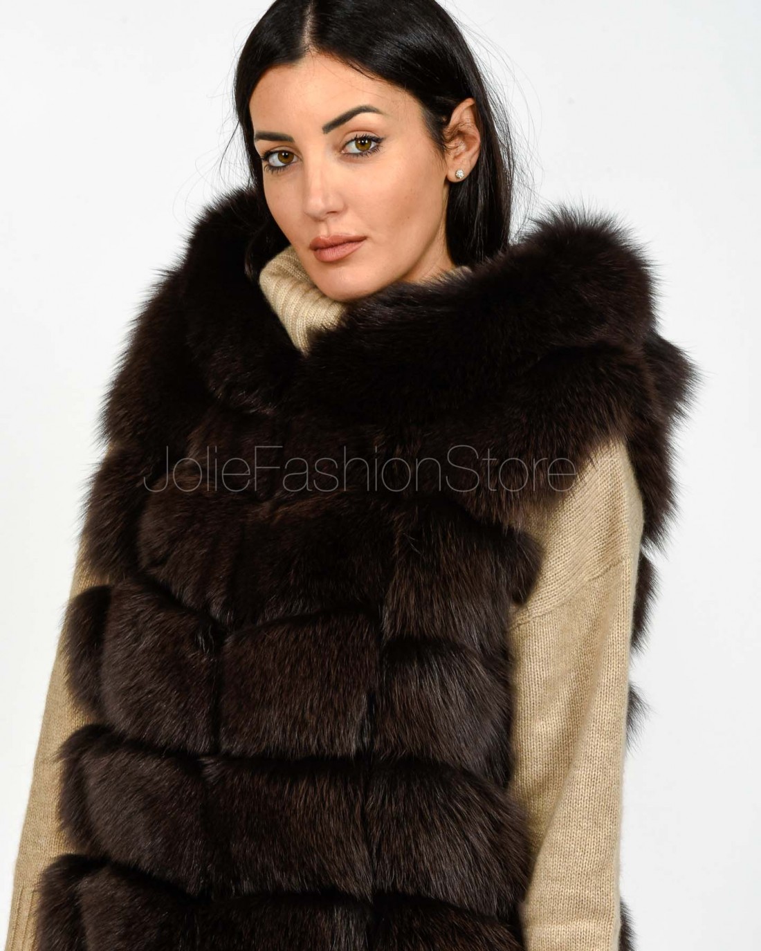 Frame Pelliccia Gilet Volpe Lungo Moka