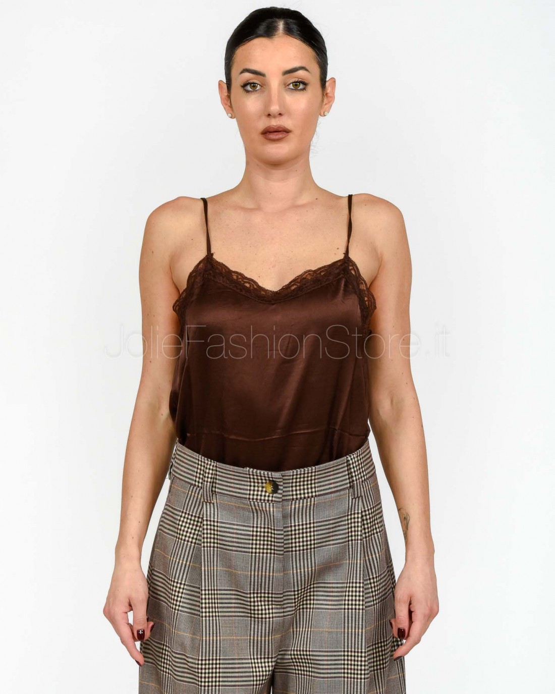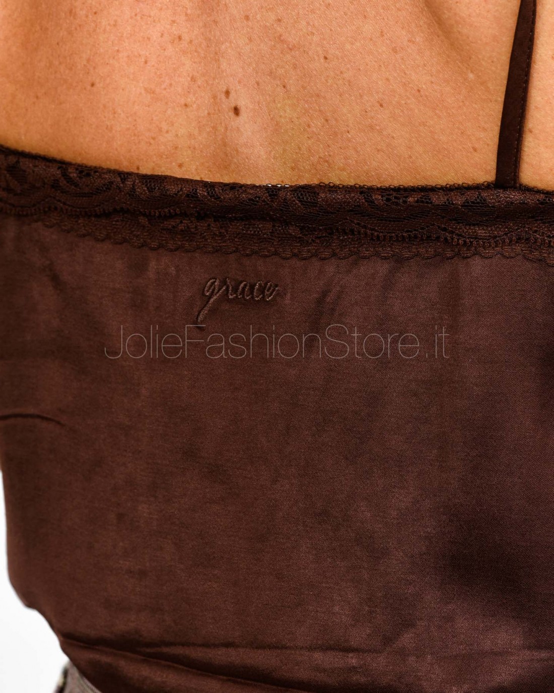 Grace & Mila Canotta in Raso e Pizzo Chocolate