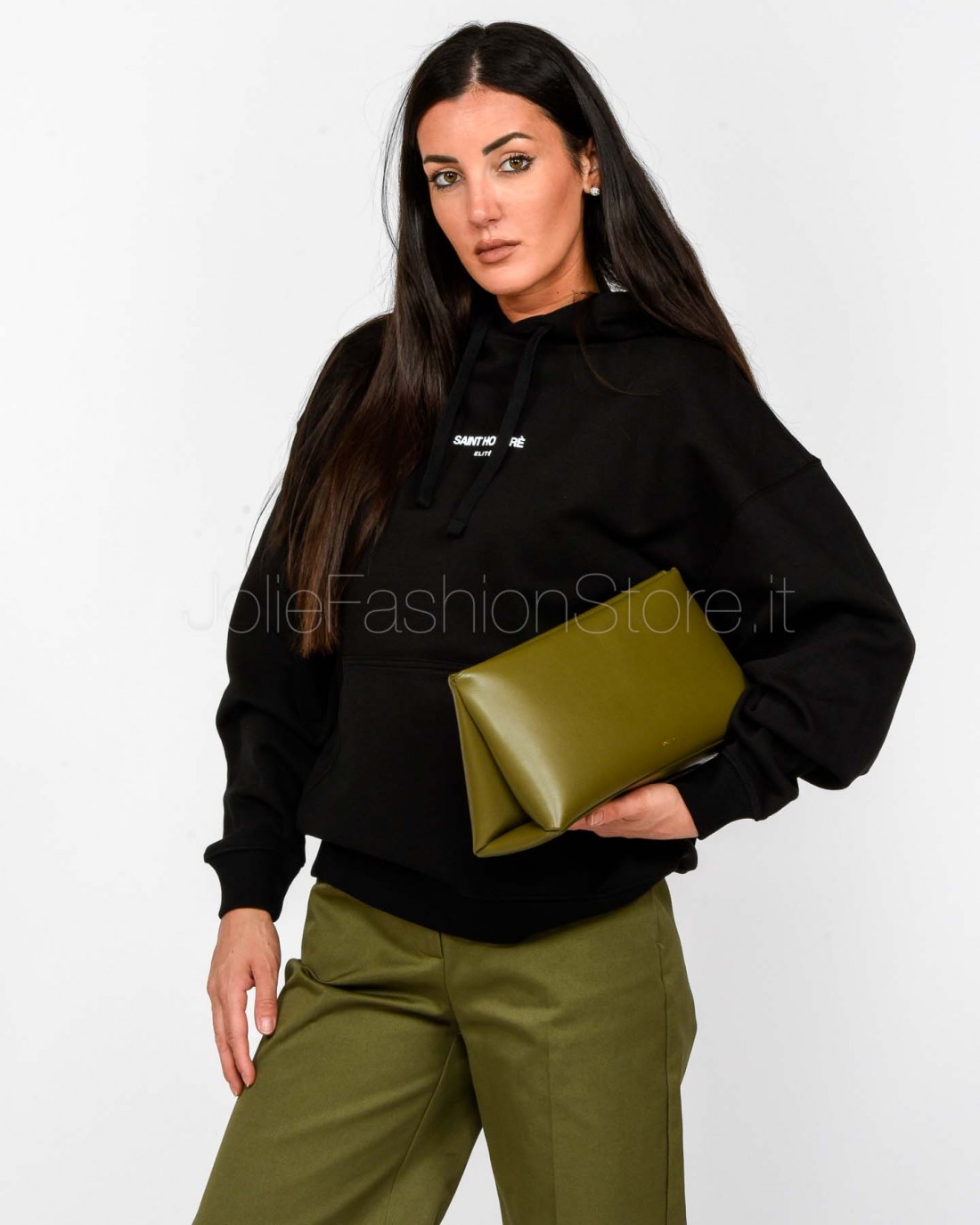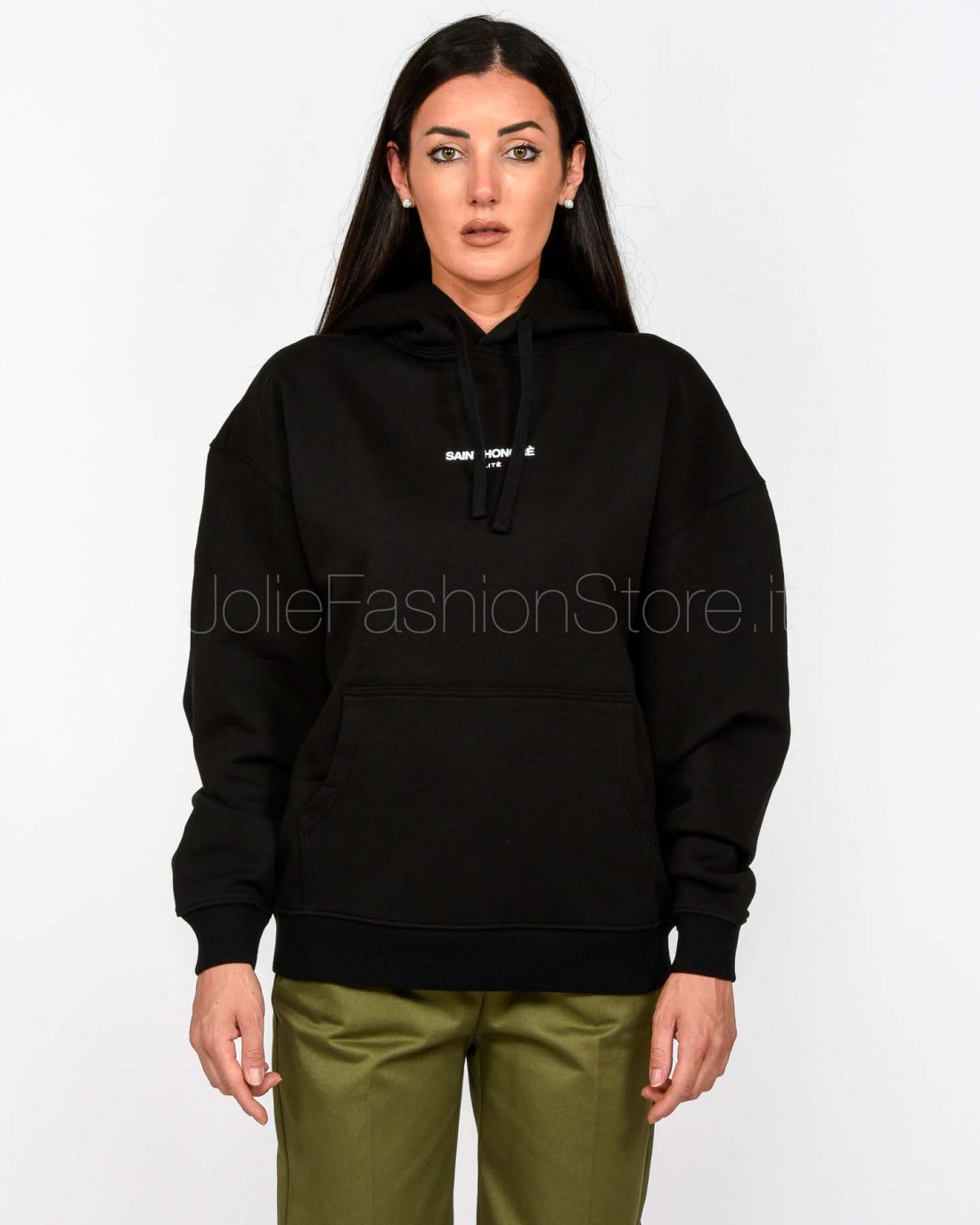 Elitè Felpa Over Con Cappuccio Nera con Logo Bianco