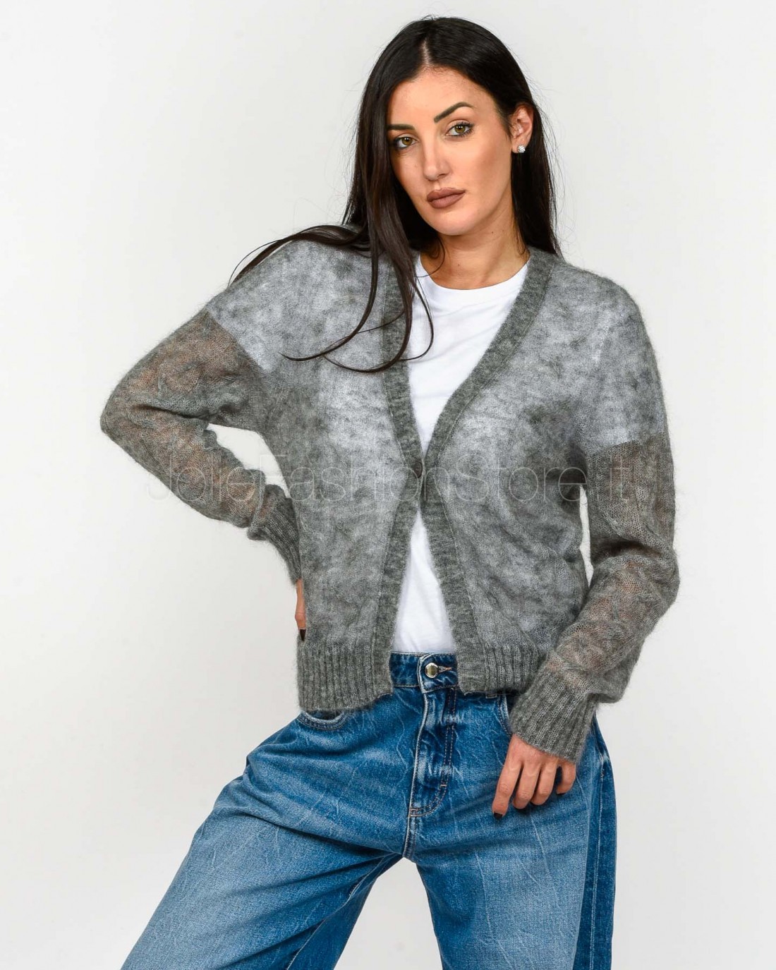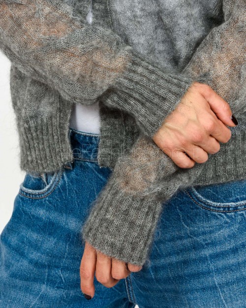 Solo Tre Cardigan 1 Bottone in Misto Lana Grigio