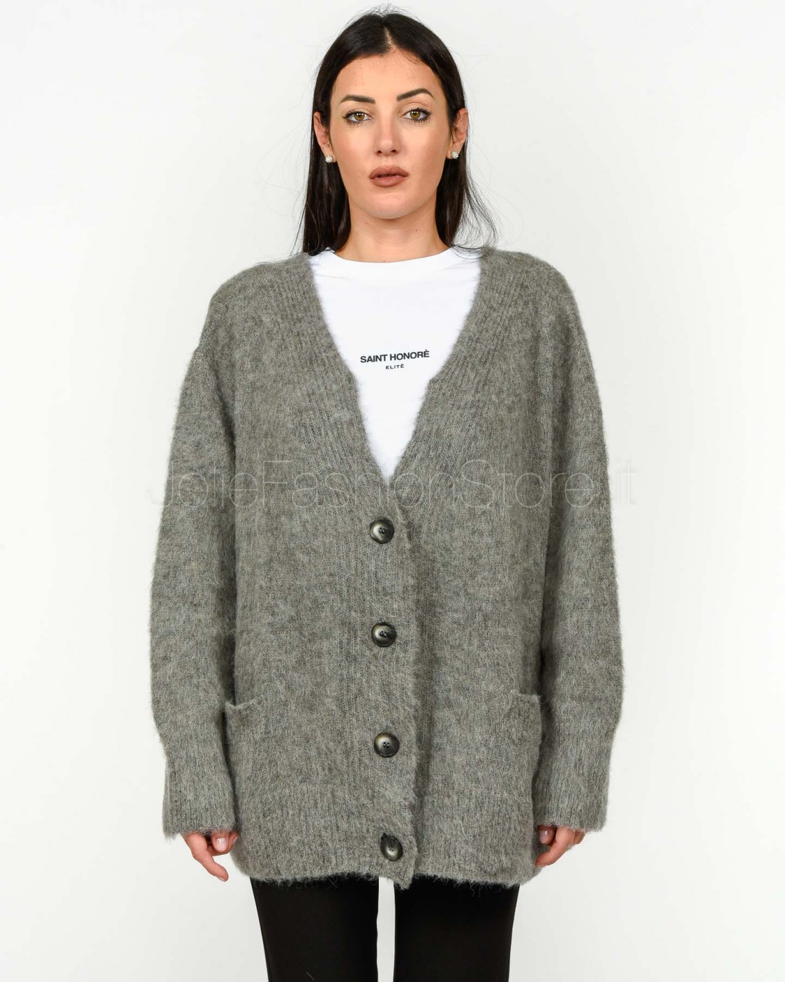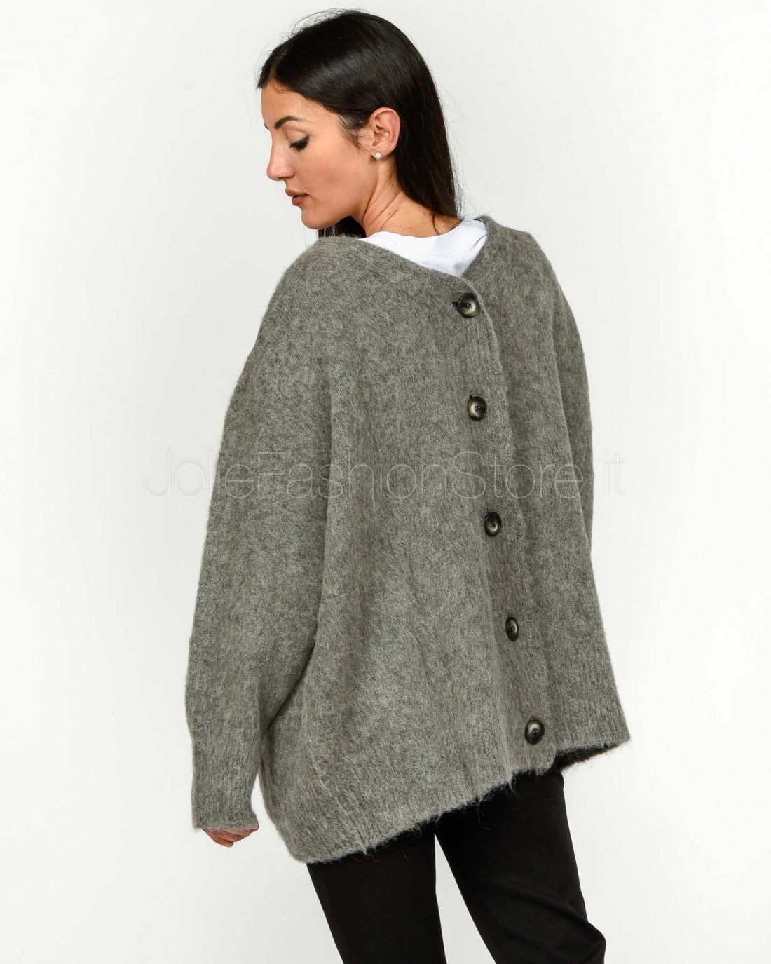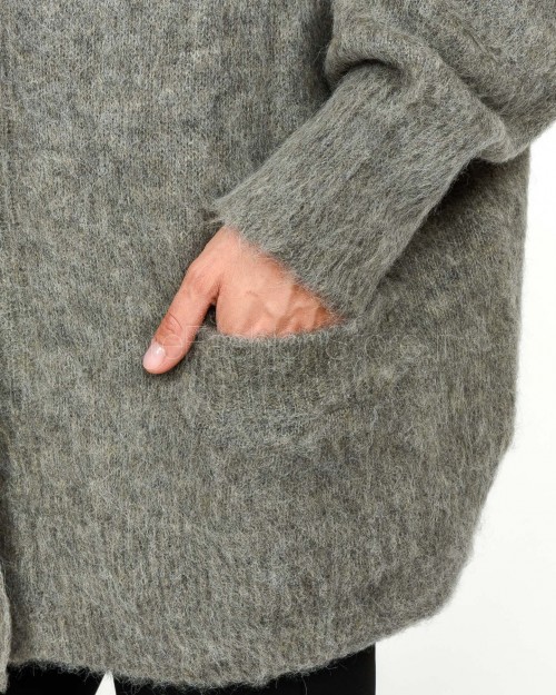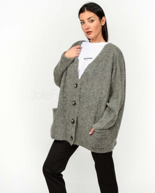 Solo Tre Cardigan Over Misto Lana Grigio