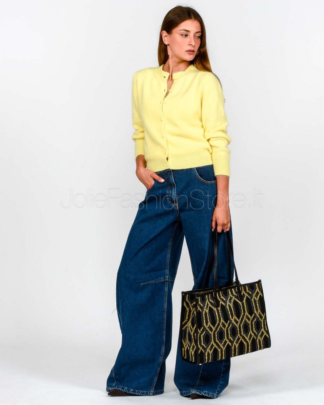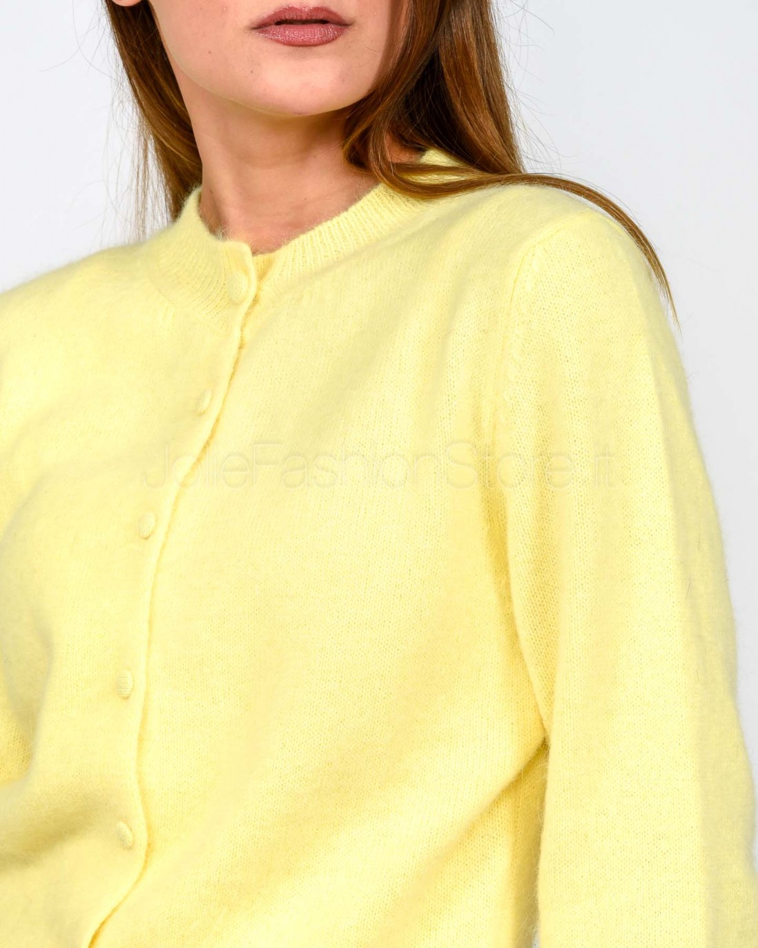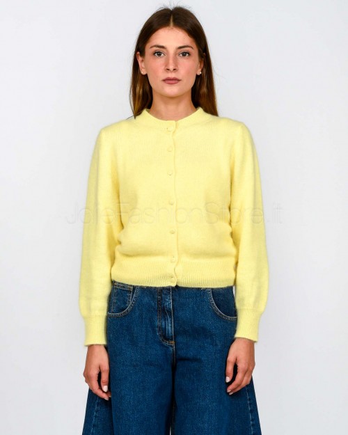 Solo Tre Cardigan Misto Lana Girocollo Giallo