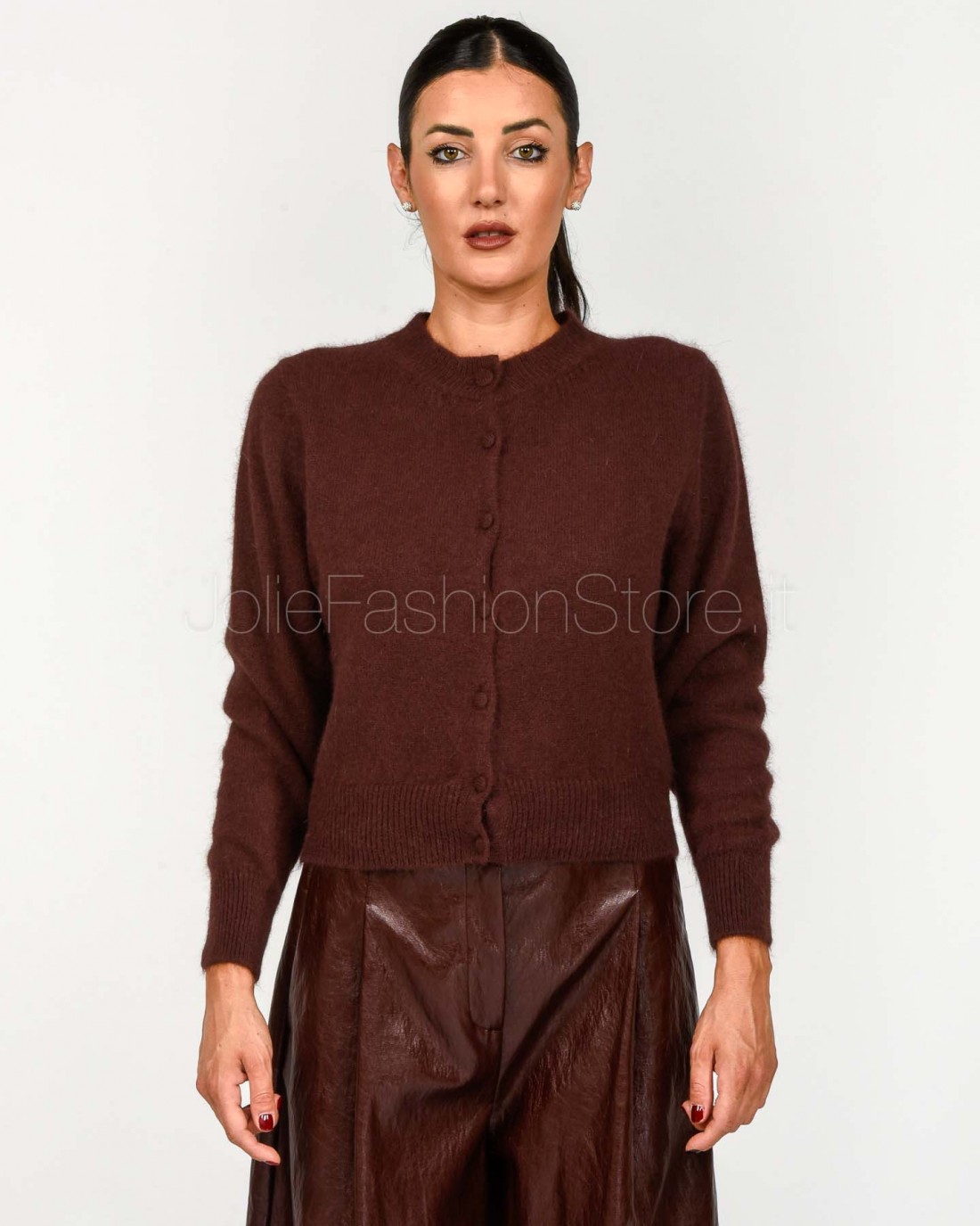 Solo Tre Cardigan Misto Lana Girocollo Marrone