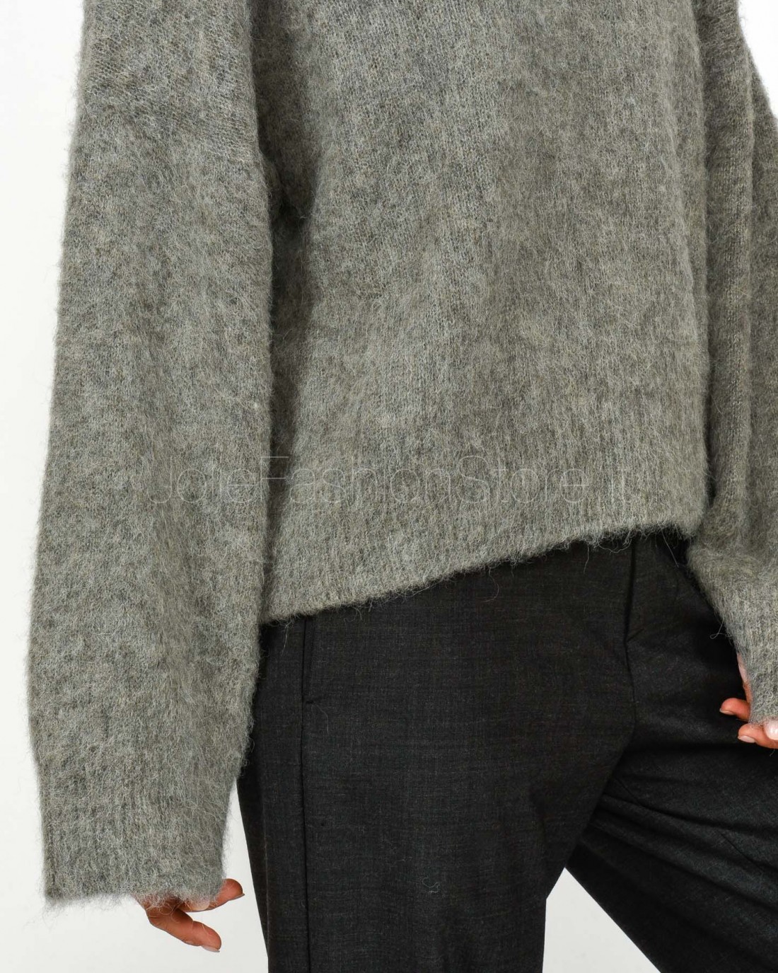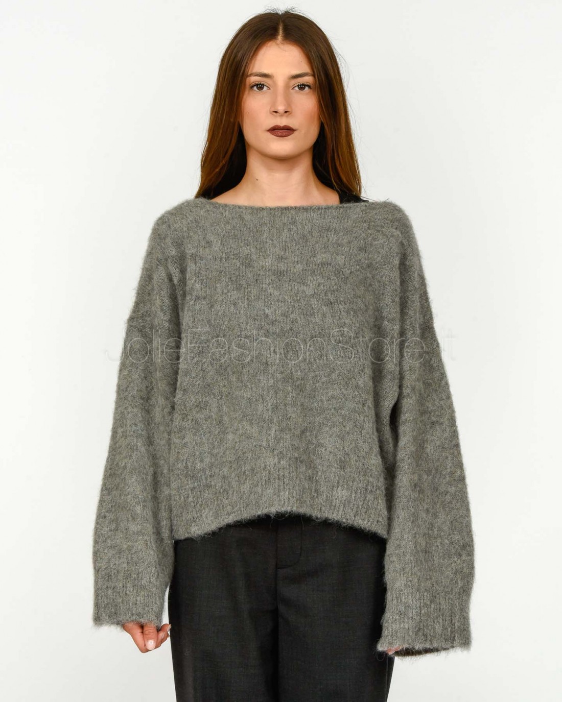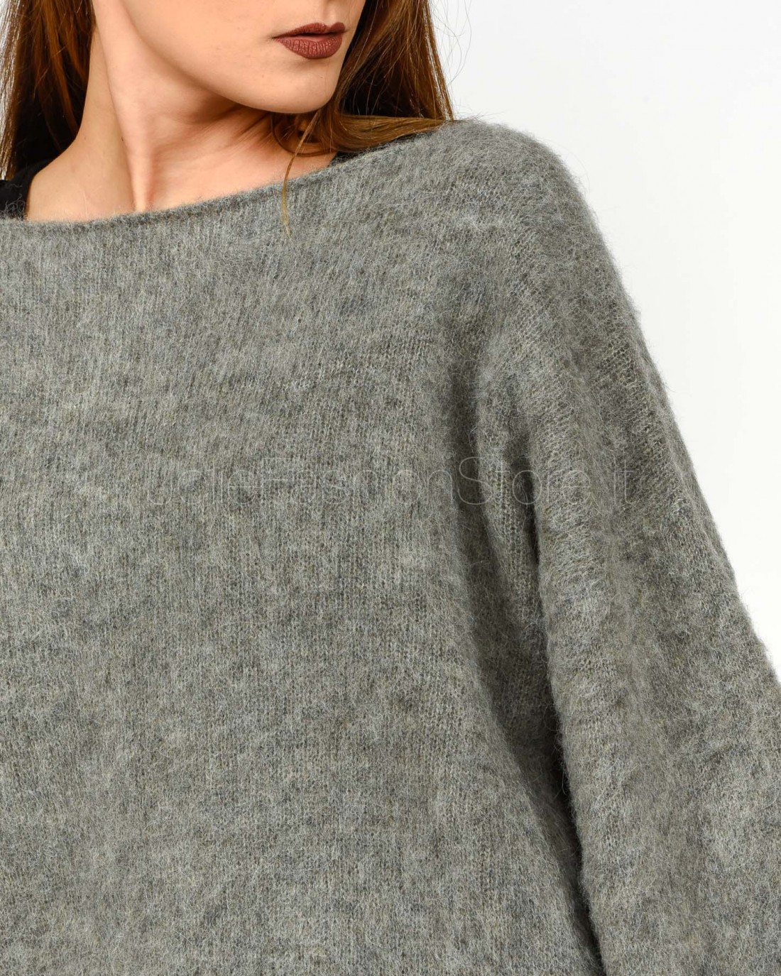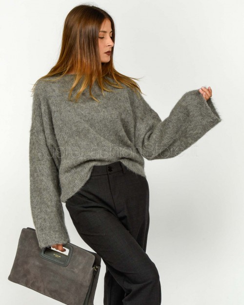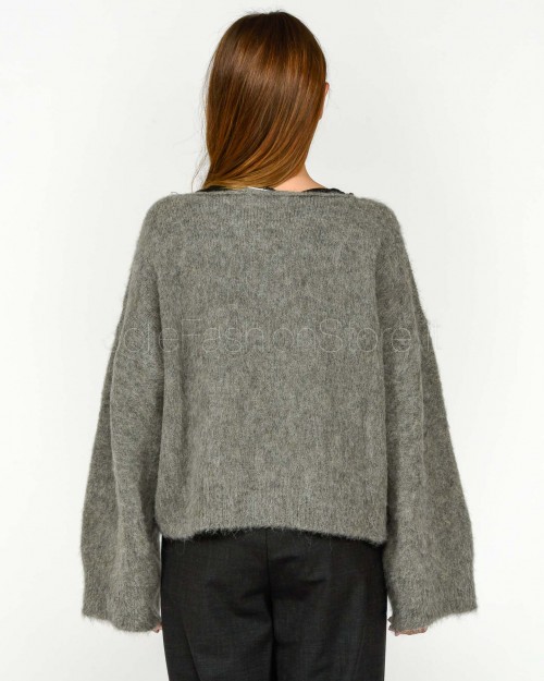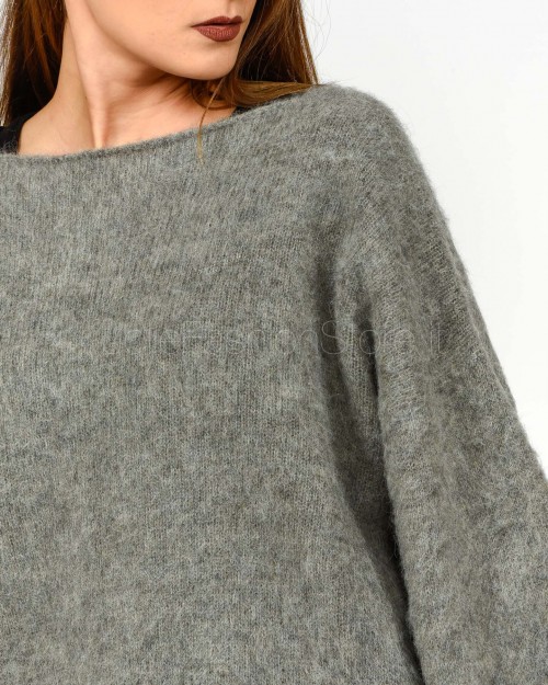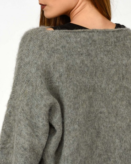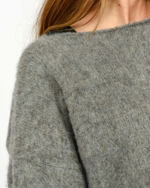 Solo Tre Maglione Misto Lana Scollo a Barca Grigio