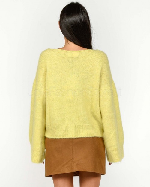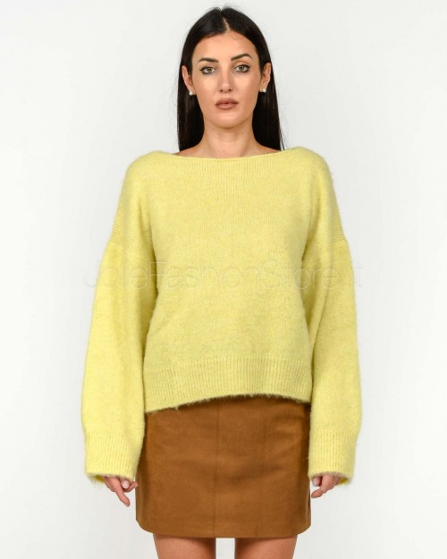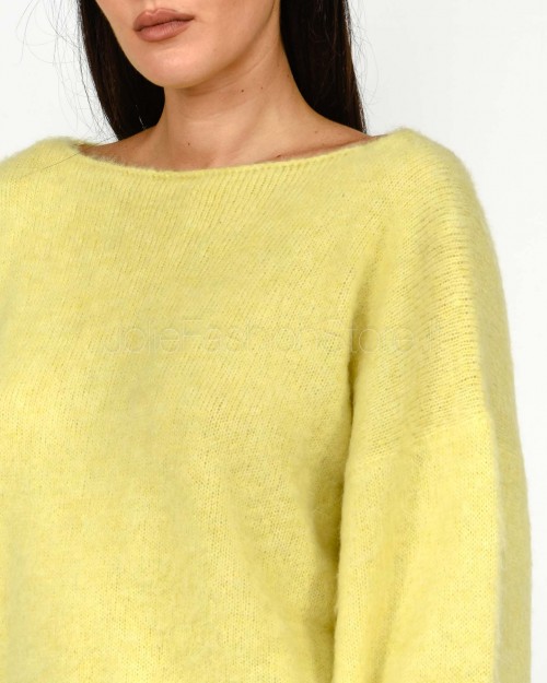 Solo Tre Maglione Misto Lana Scollo a Barca Giallo