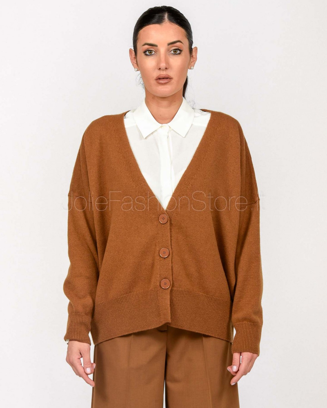 Solo Tre Cardigan In Lana 3 Bottoni Marrone