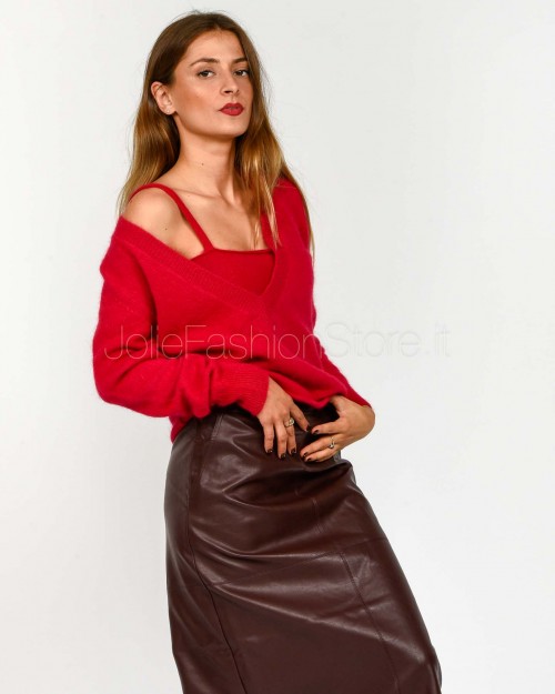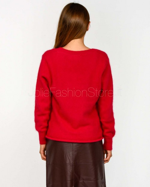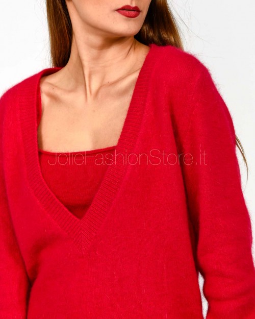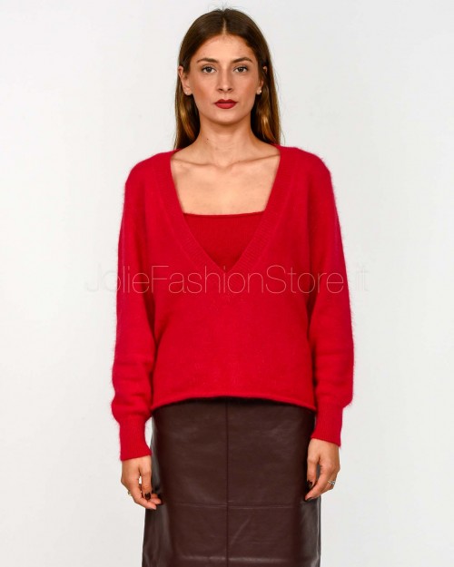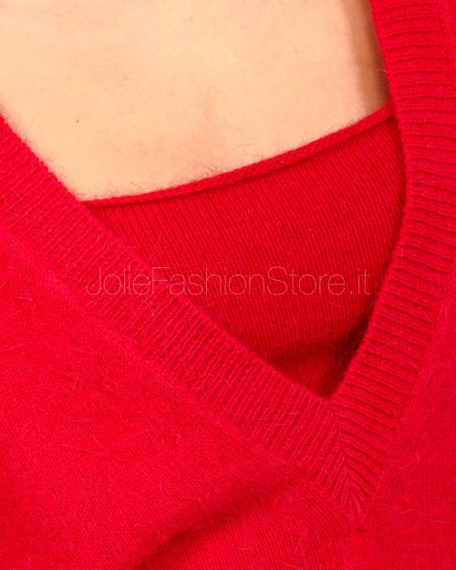 Solo Tre Maglia Scollo Profondo a V in Misto Lana Rosso