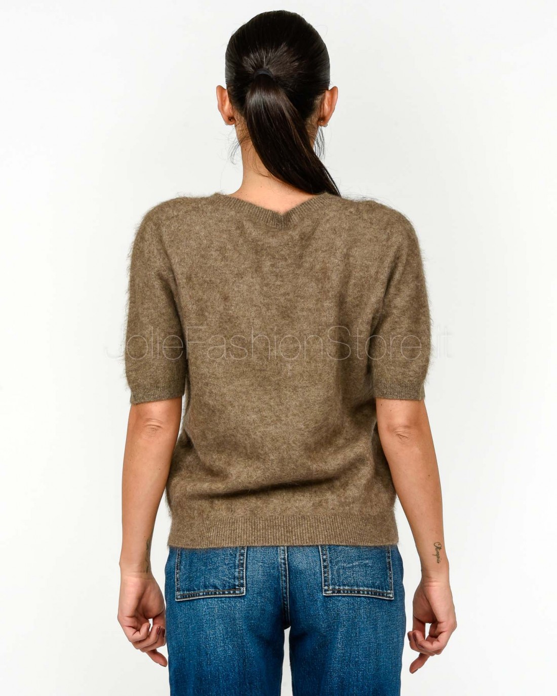 Solo Tre Maglia Maniche Corte a Sbuffo Misto Cashmere Nocciola
