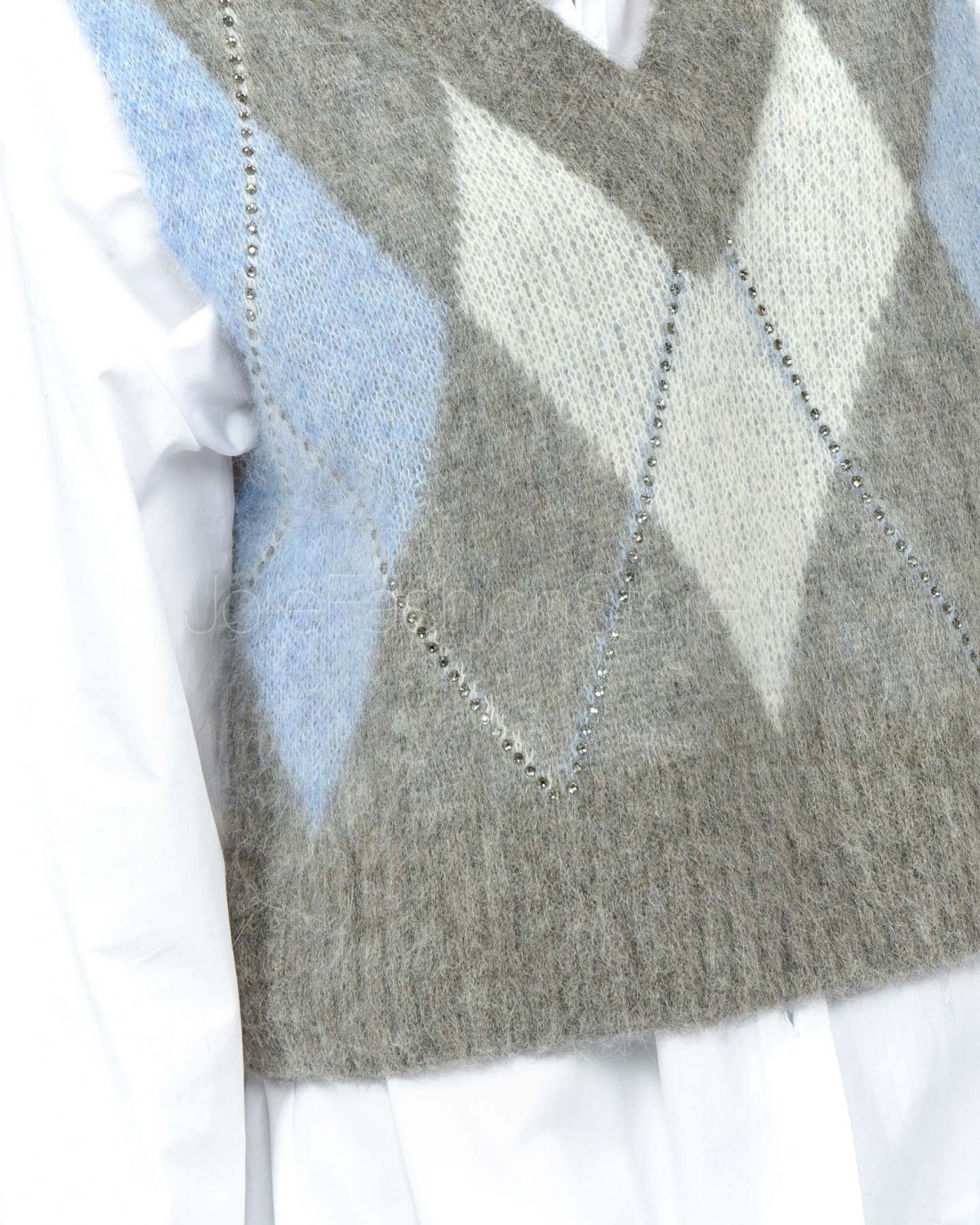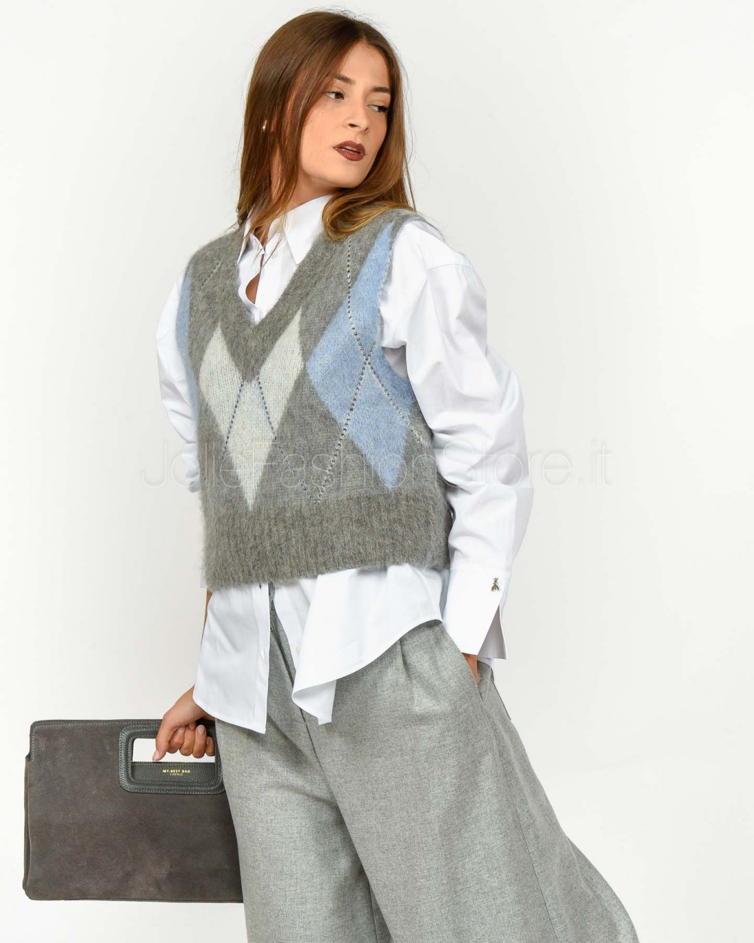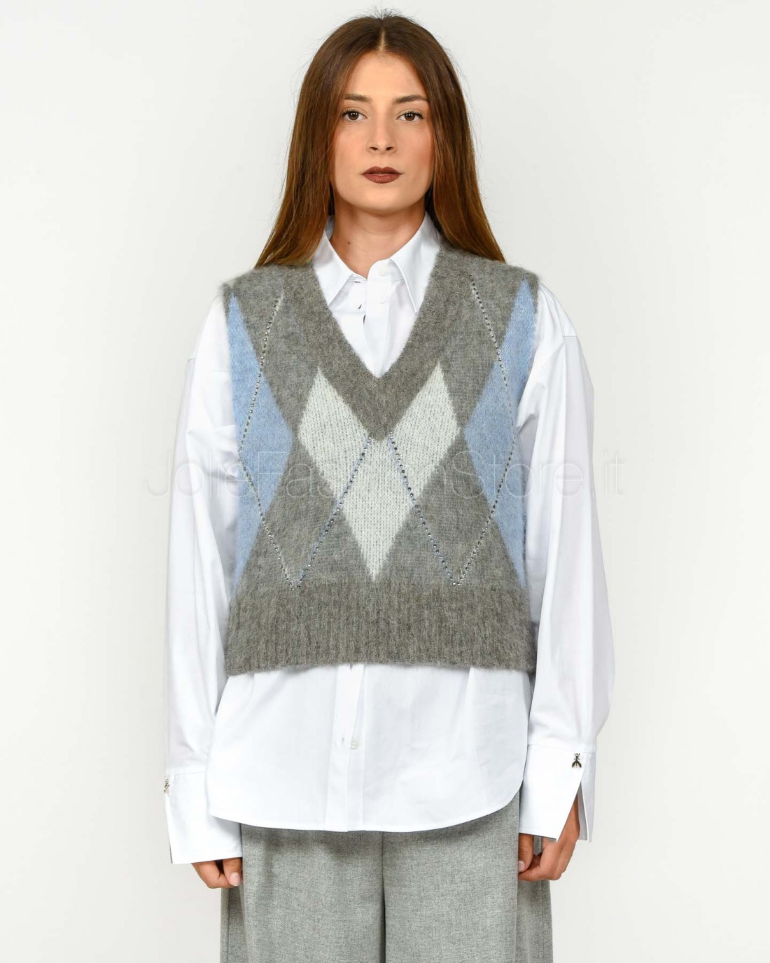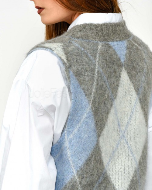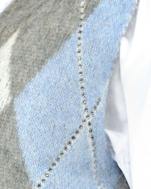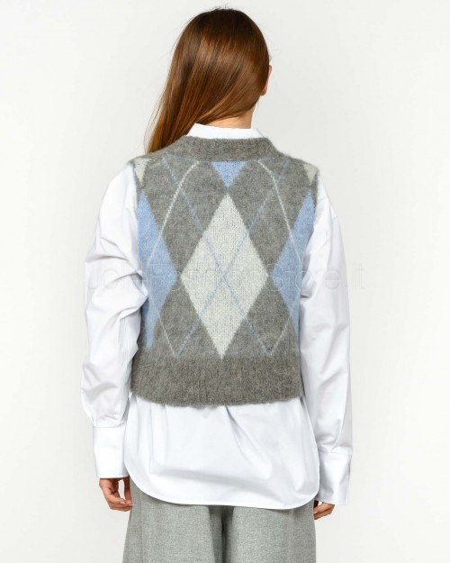 Solo Tre Maglia Crop Smanicata Misto Lana Grigio/Celeste