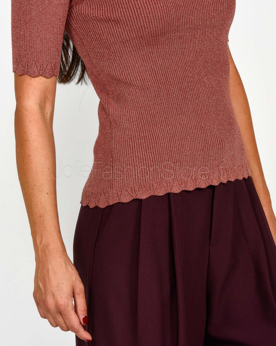 Grace & Mila Maglia a Costine Maniche Corte Terracotta