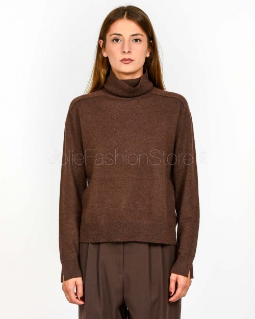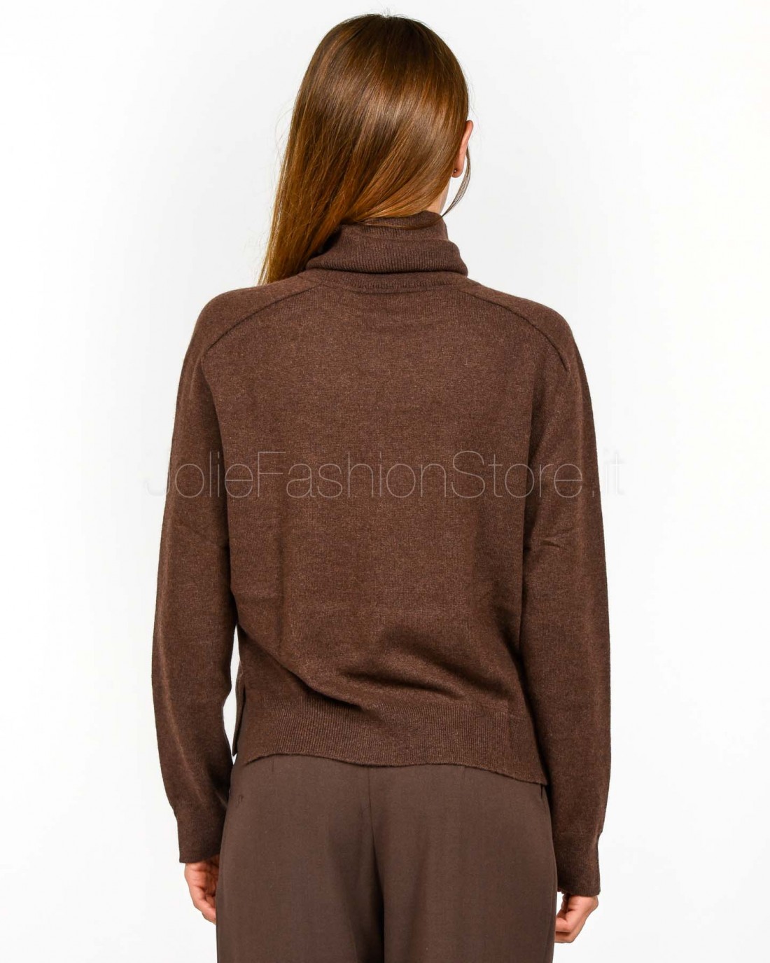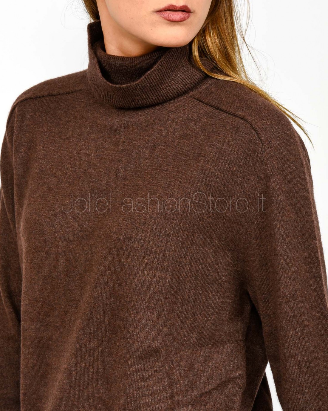 Not Shy Maglione Collo Alto Coffee in Cashmere Modello Pola