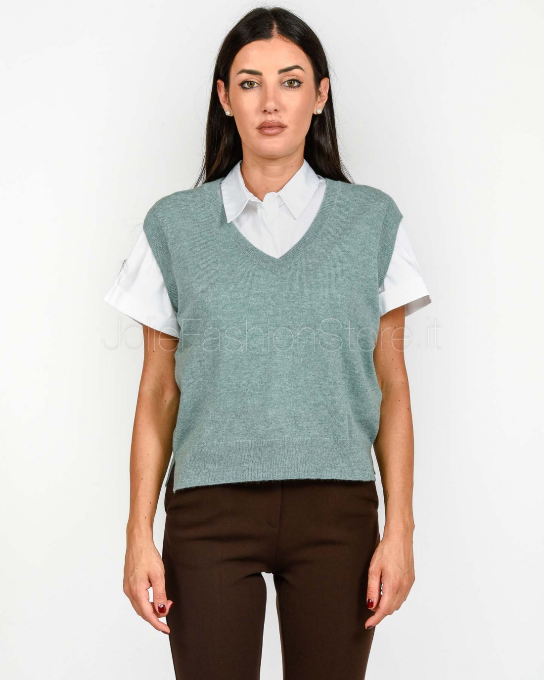 Not Shy Gilet Scollo a V Aquamarine Modello Elsie