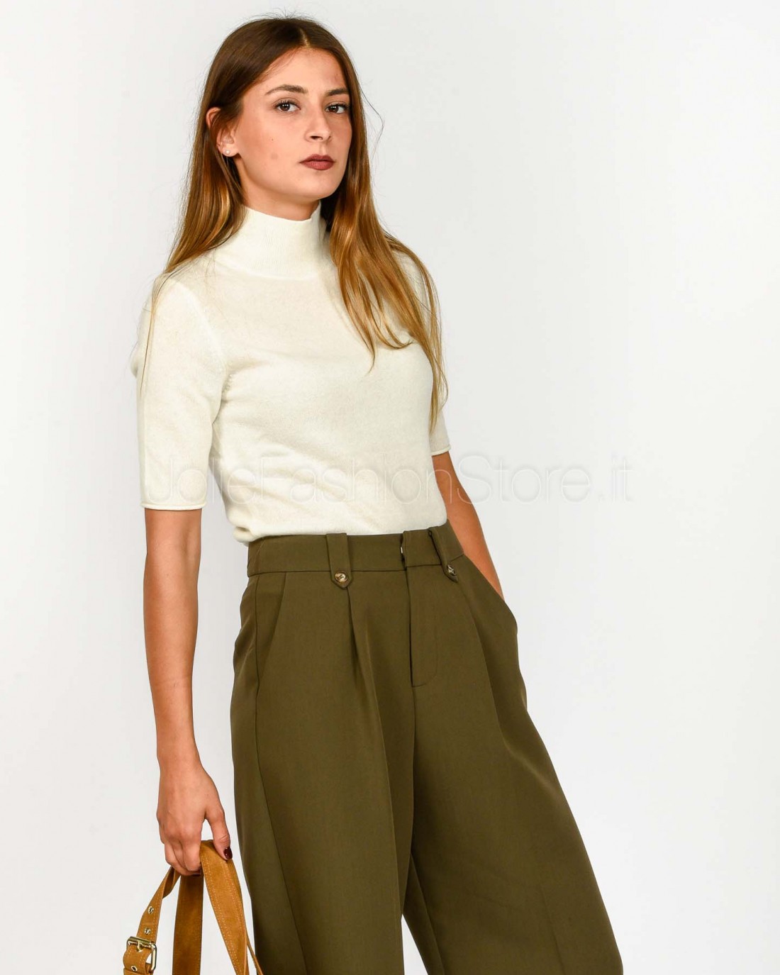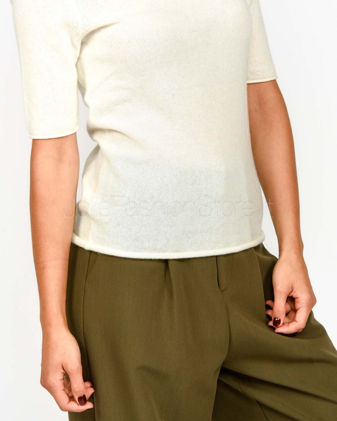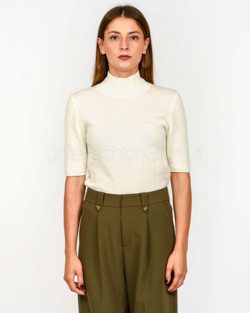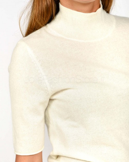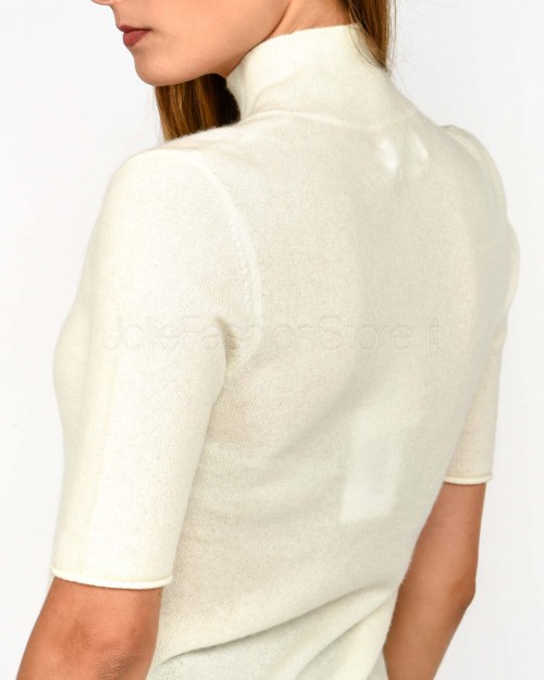 Not Shy Maglia Maniche Corte in Cashmere Bianco Modello Madaleine