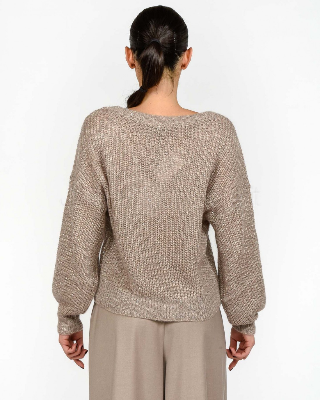 Marella Maglia in Filato Misto Kid-Mohair con Micropaillettes Beige