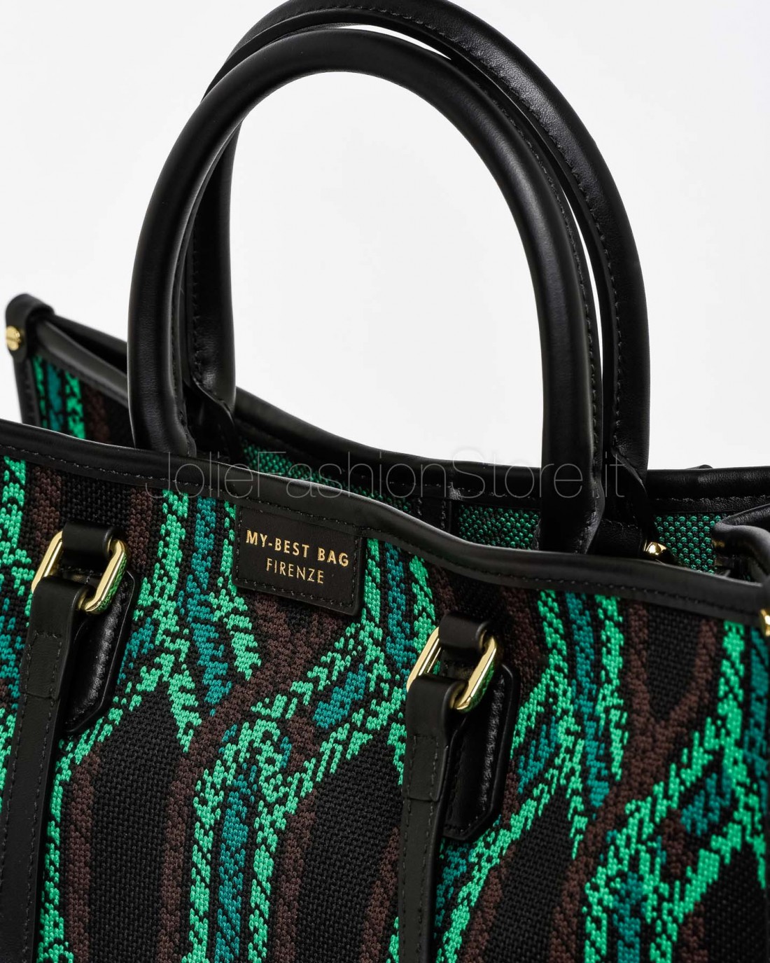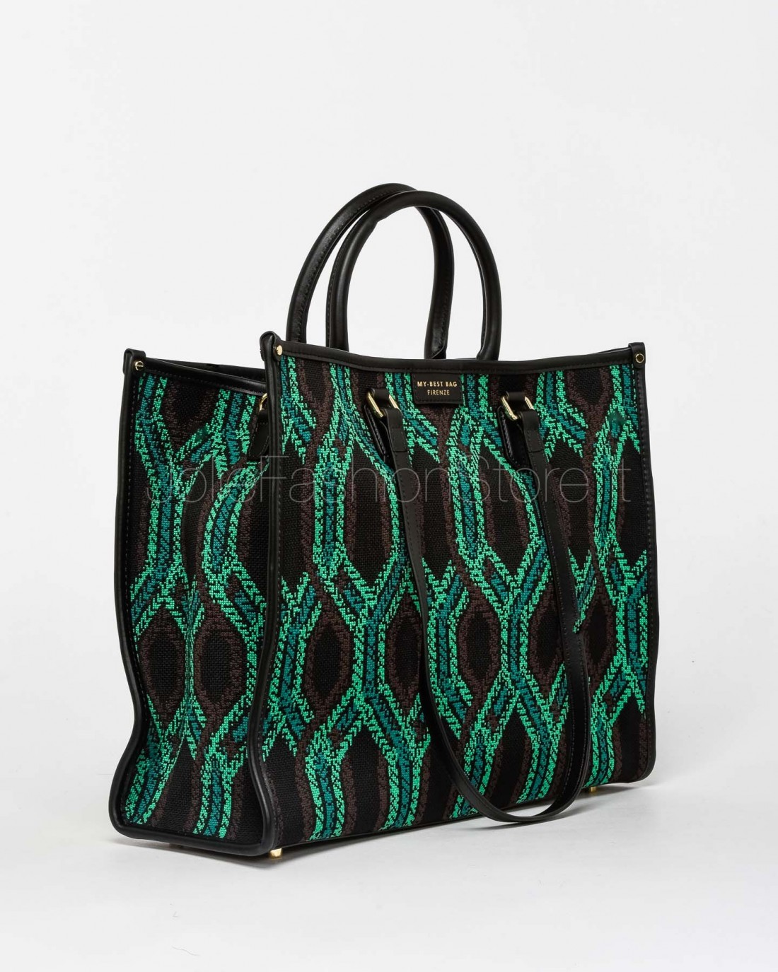 My Best Bag Tote a Mano Nero/Verde Modello Atena Fortuny 38x30x14,5