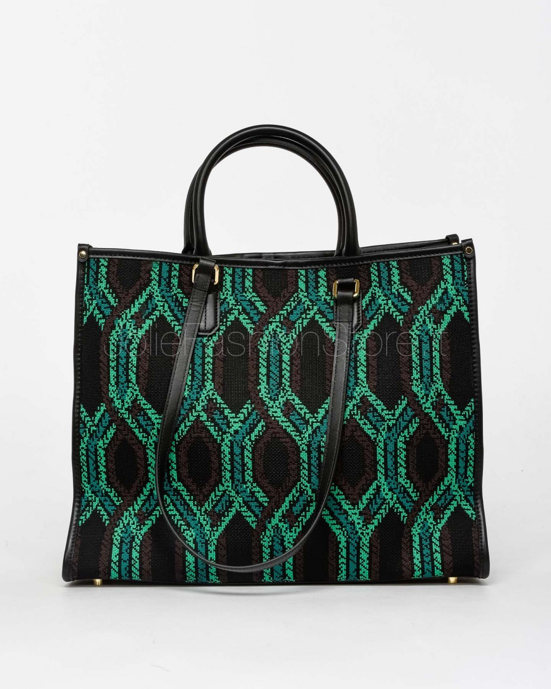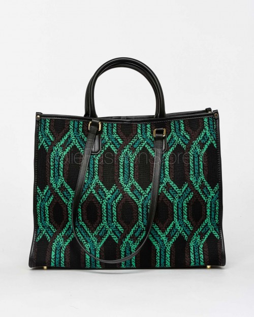 My Best Bag Tote a Mano Nero/Verde Modello Atena Fortuny 38x30x14,6