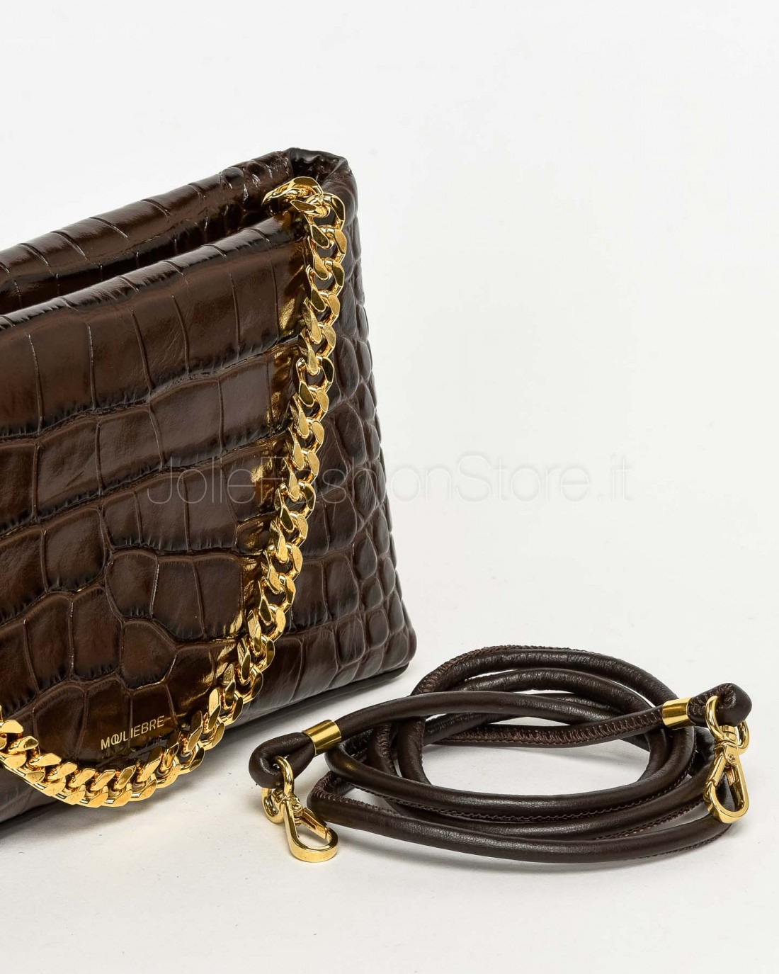 Mouliebre Borsa In Pelle Stampa Cocco Marrone Modello Carlottina