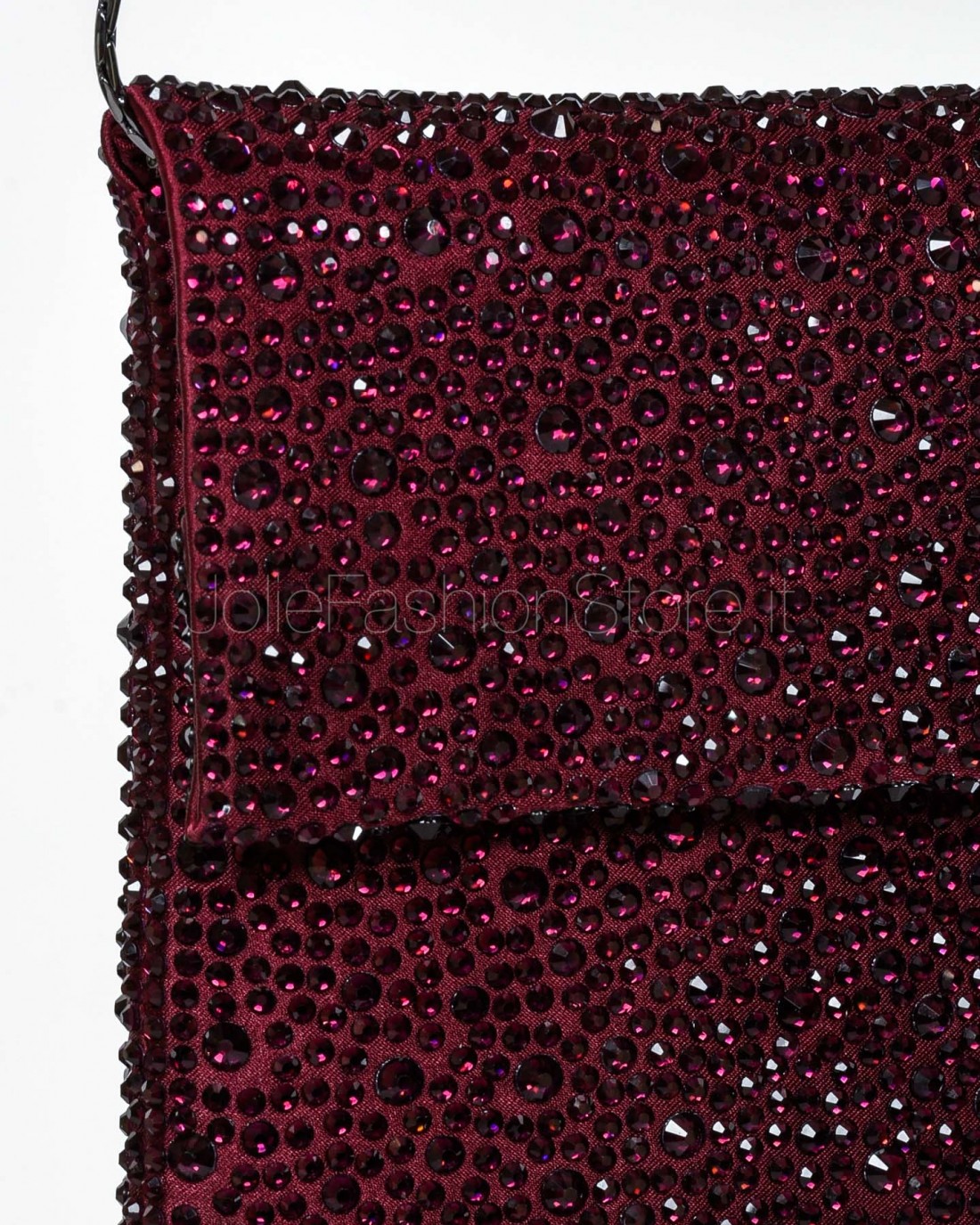 Twenty Fourhaitch Pochette ricoperta da strass tracolla sottile in metallo.25*1*15 Prugna