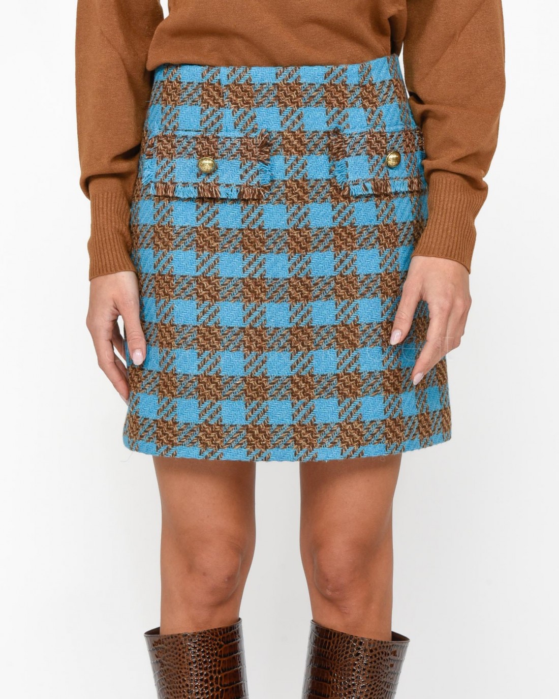 Alessandro Legora Mini Skirt Check Boucle Turquoise