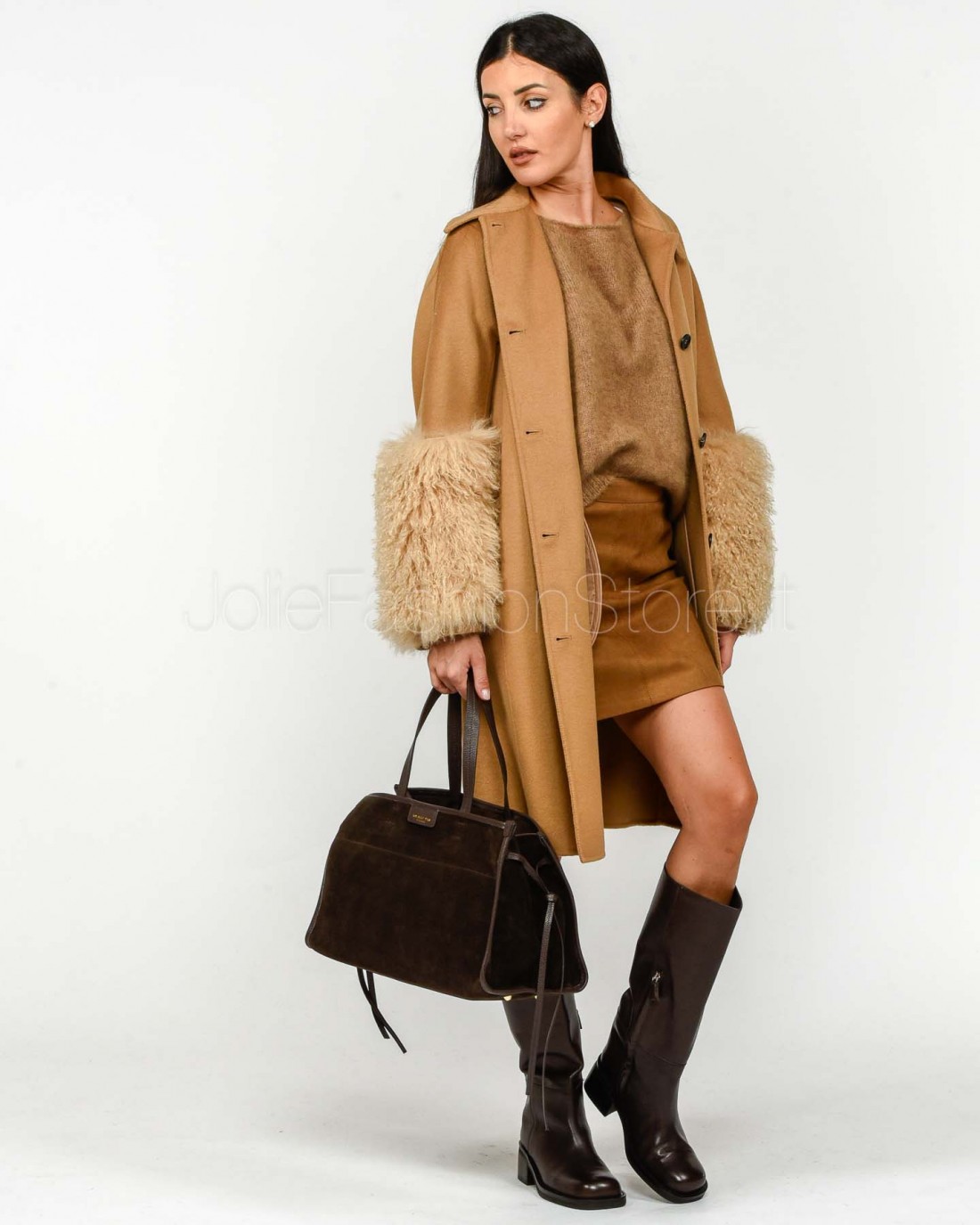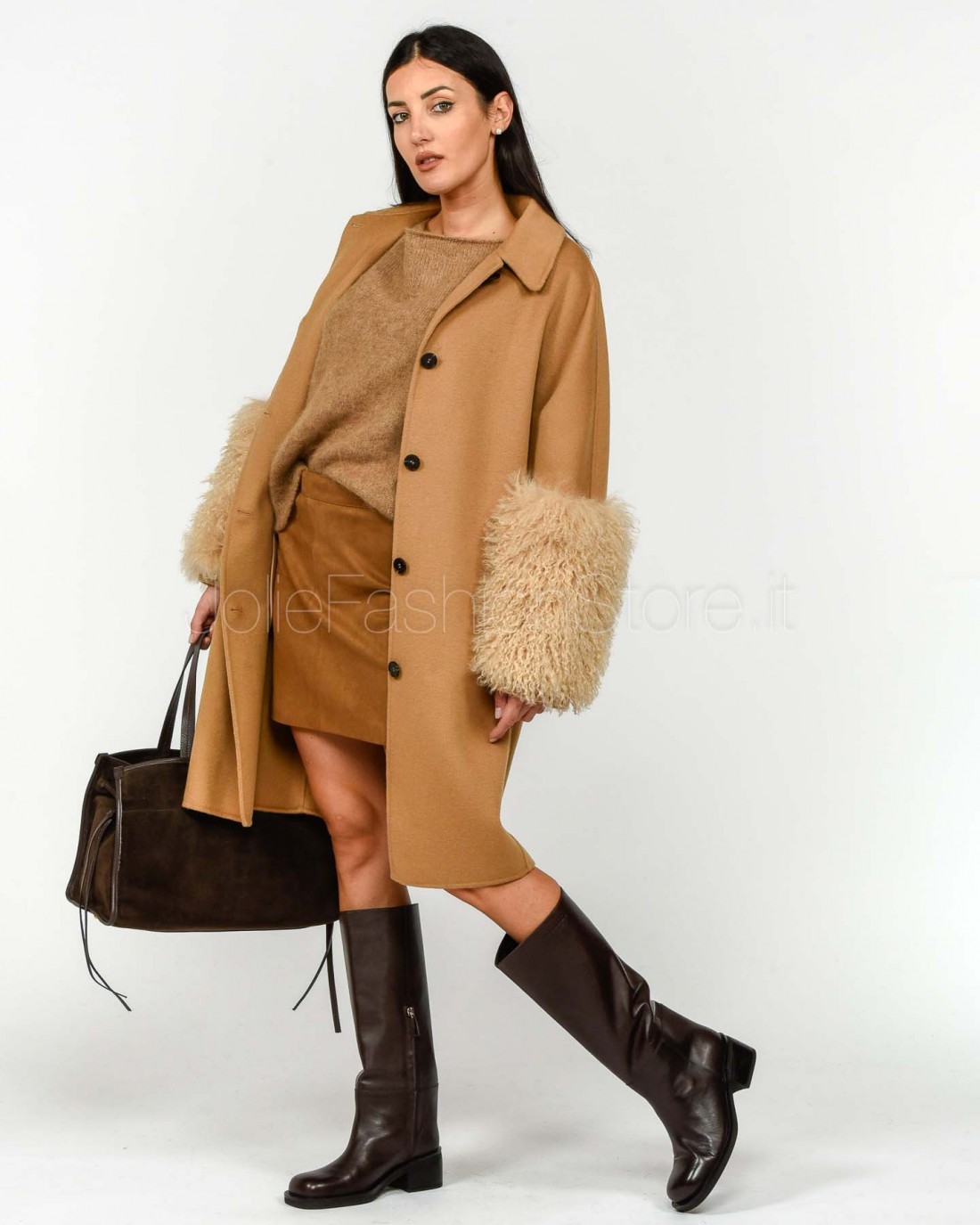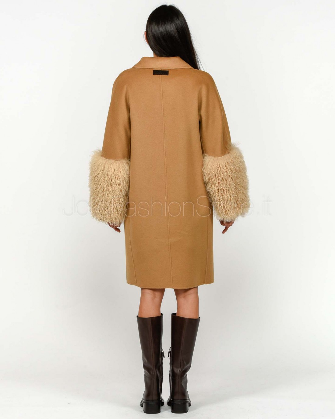 Ermanno Cappotto Monopetto Con Manicotto Cammello
