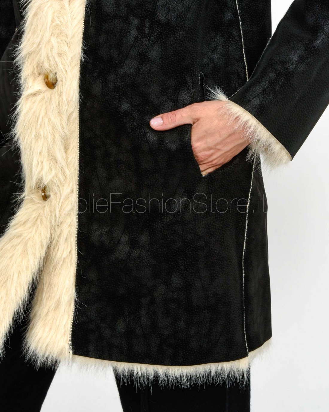 Tavus Milano Reversible Faux Fur Coat Black