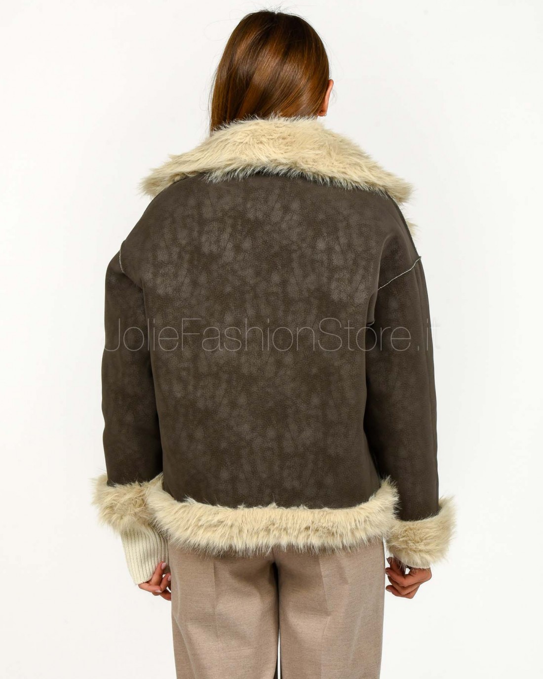 Tavus Milano Giacca Reversibile Eco Pelliccia Dark Brown