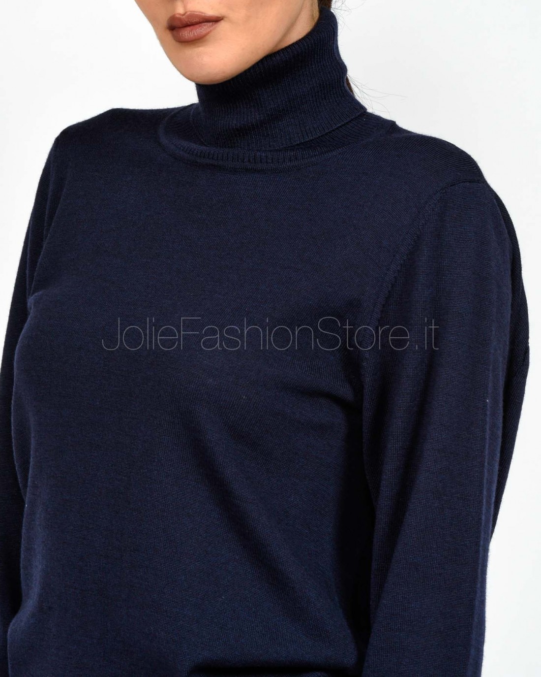 Meimeij Maglia Dolcevita in lana Vergine Blue Parisien