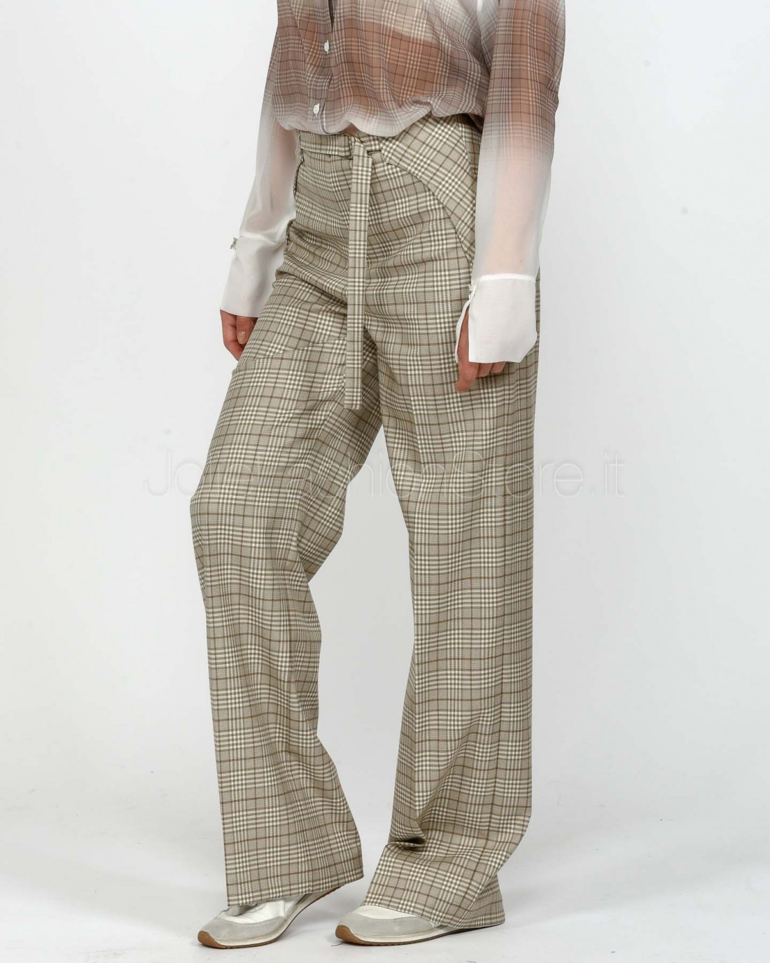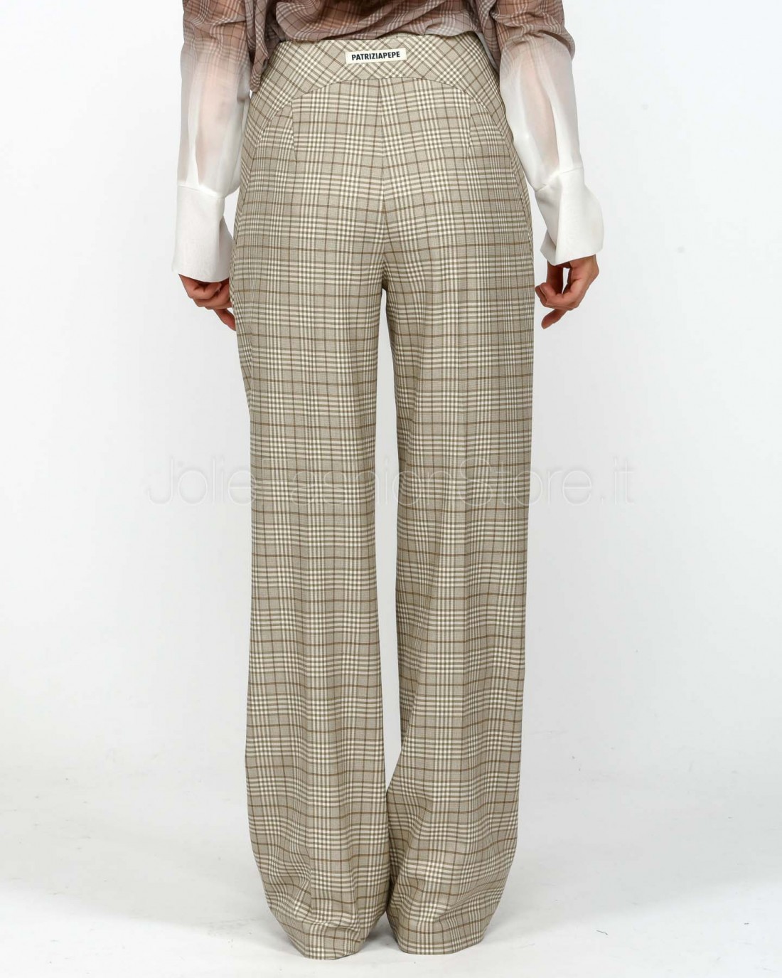 Patrizia Pepe Stone Beige Check Fluid Trousers