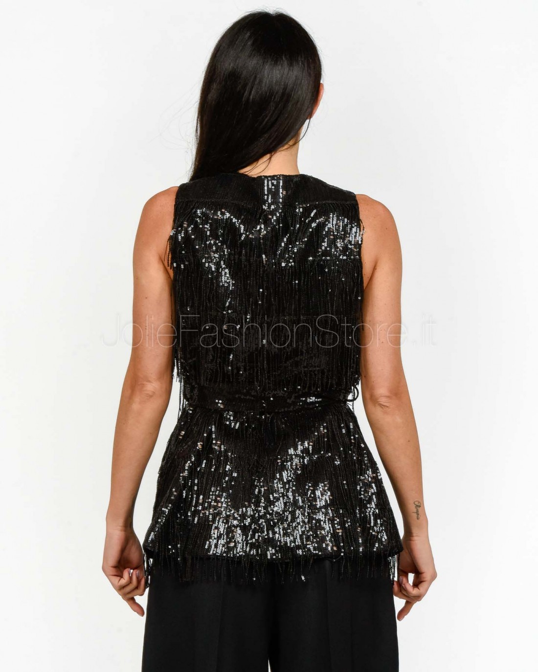 Twenty Fourhaitch GILET PAILETTES CON FRANGE, LUNGHEZZA BACINO ,FODERATO IN SATIN. CINTURA REGOLABILE IN PAILETTES Nero