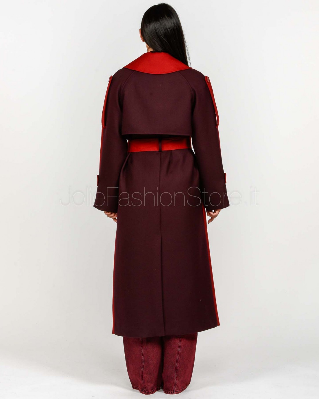 Patrizia Pepe Cappotto Trench in Lana Velvet/Purple Red