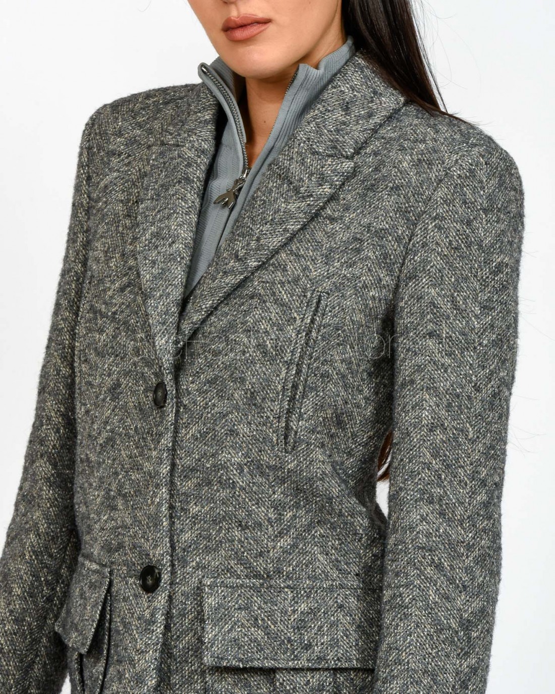 Patrizia Pepe Cappotto Midi Herringbone Gray Greige