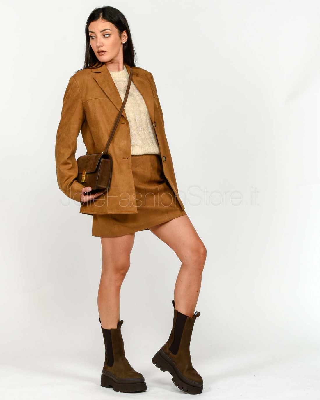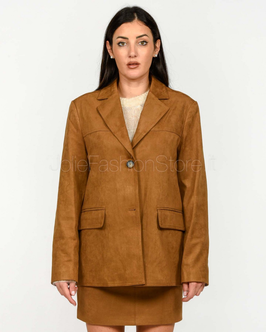 Grace & Mila Giacca Monopetto Dritta in Suede Cammello