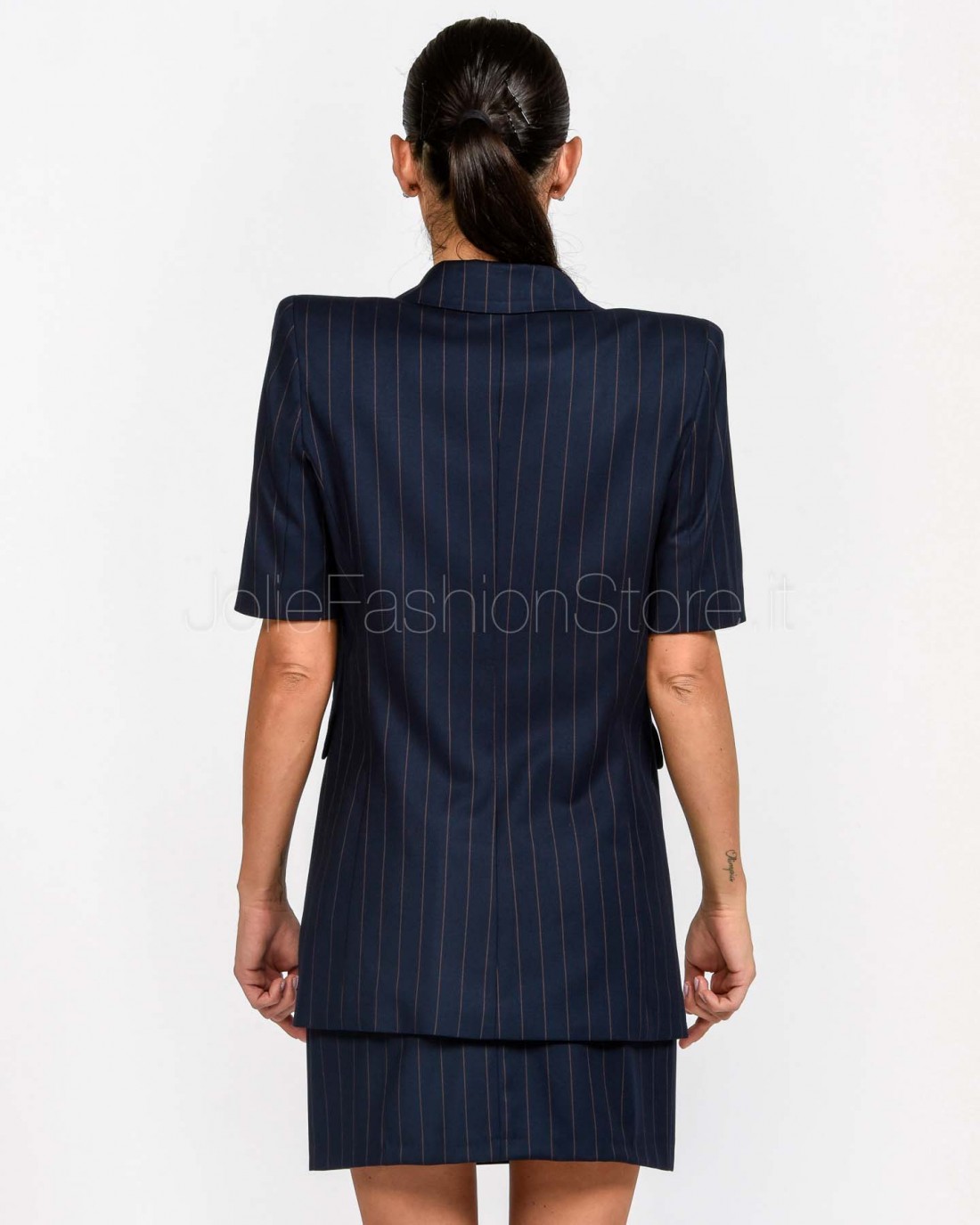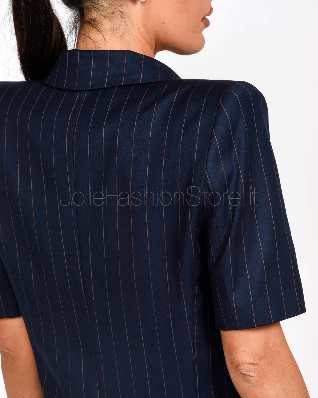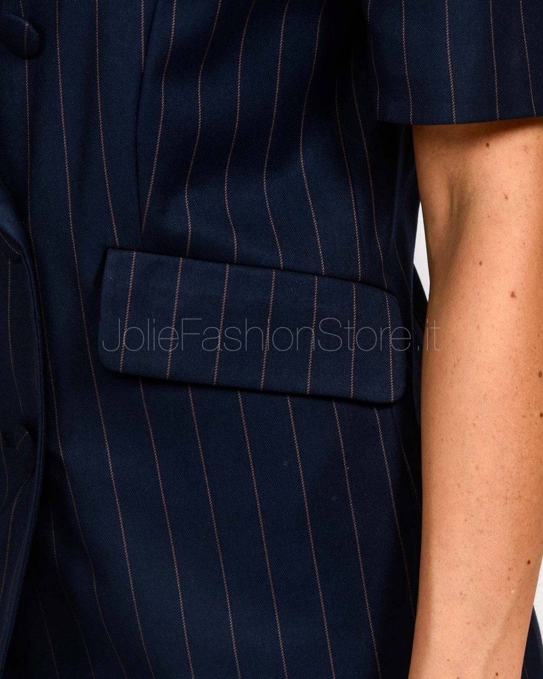 Actualee Giacca Doppiopetto Manica Corta Gessata Blu/Marrone  15100 BLU