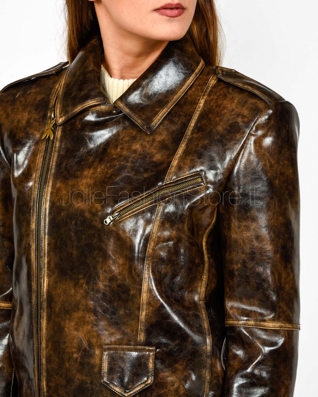 Patrizia Pepe Chiodo Oversize in Tessuto Spalmato Brown/Black Brushed
