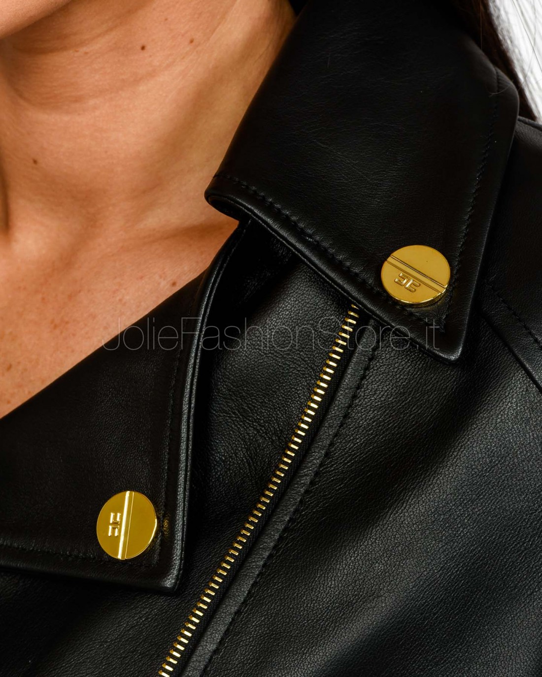 Elisabetta Franchi Giacca Biker in Pelle Nero