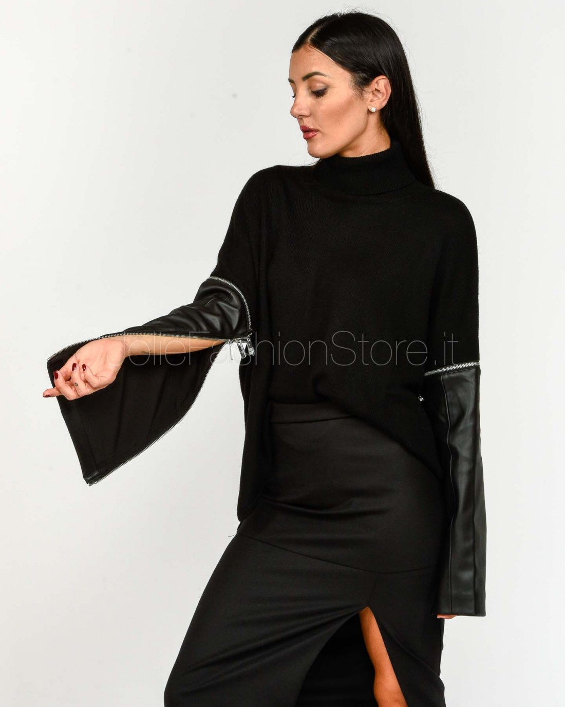 Meimeij Maglia Dolcevita Con Maniche Staccabili Nero  M5FZ81 100