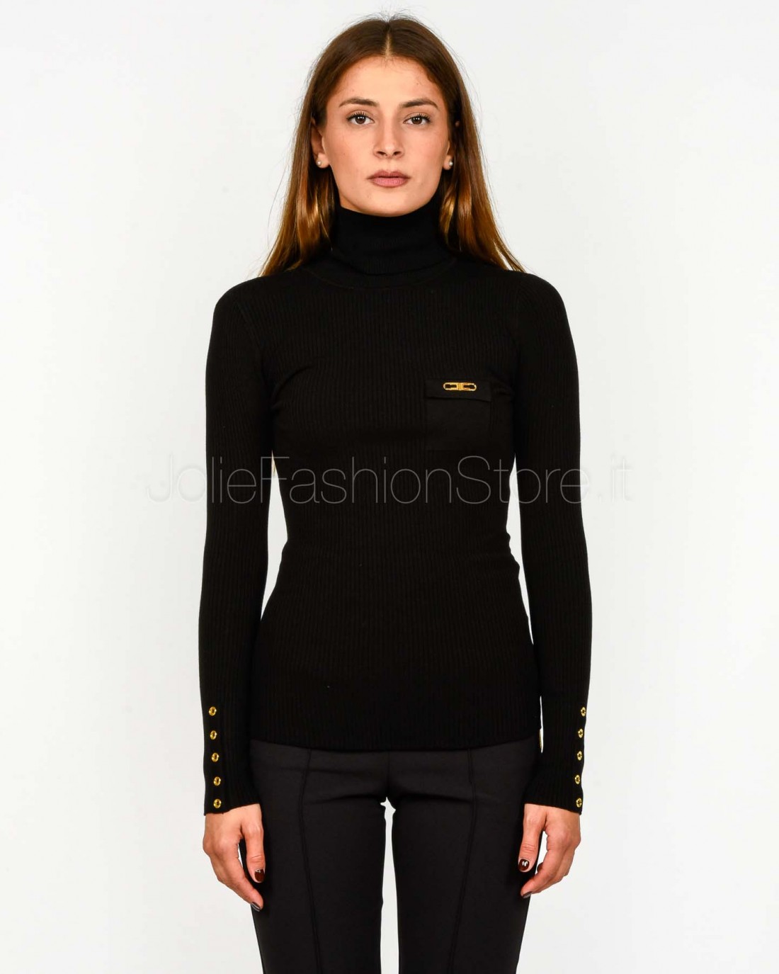Elisabetta Franchi Maglia a Costine Con Taschino Nero