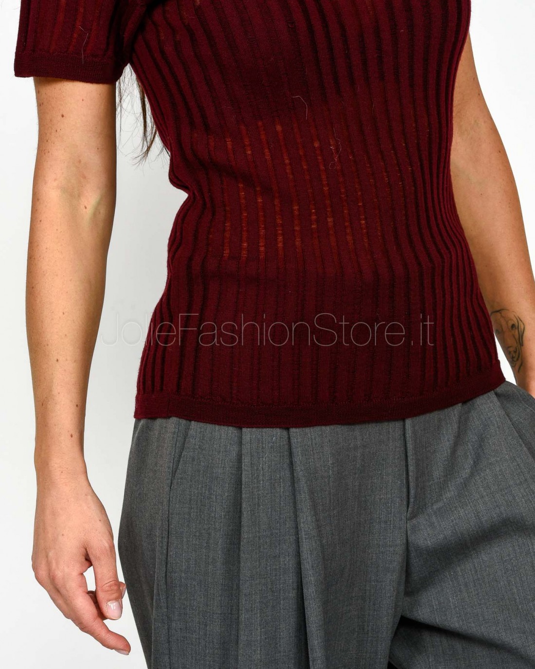 Grifoni Maglia a Costine Maniche Corte Bordeaux