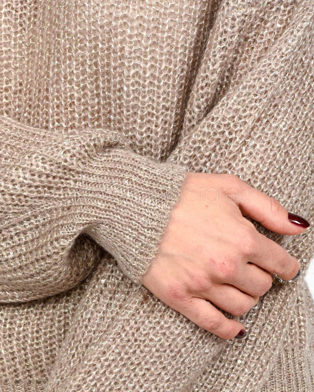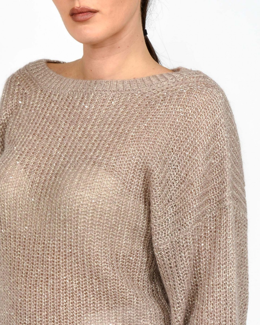 Marella Maglia in Filato Misto Kid-Mohair con Micropaillettes Beige  CINQUE
