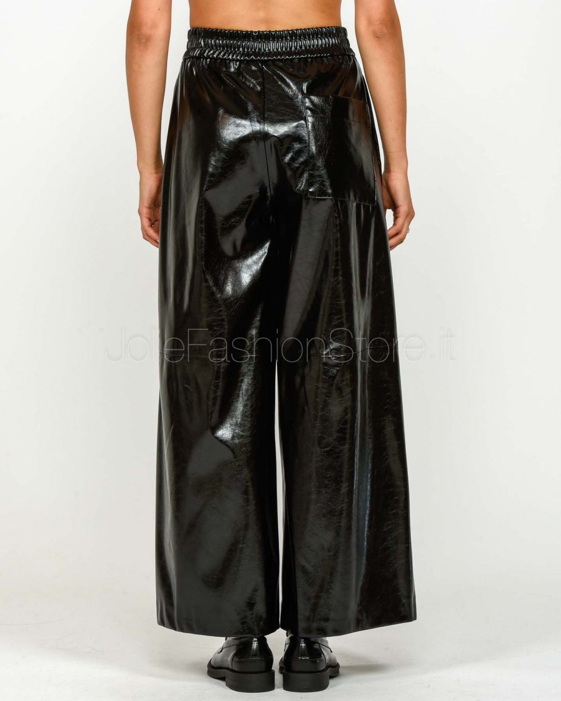 Meimeij Pantalone in Ecopelle Effetto Vernice Nero