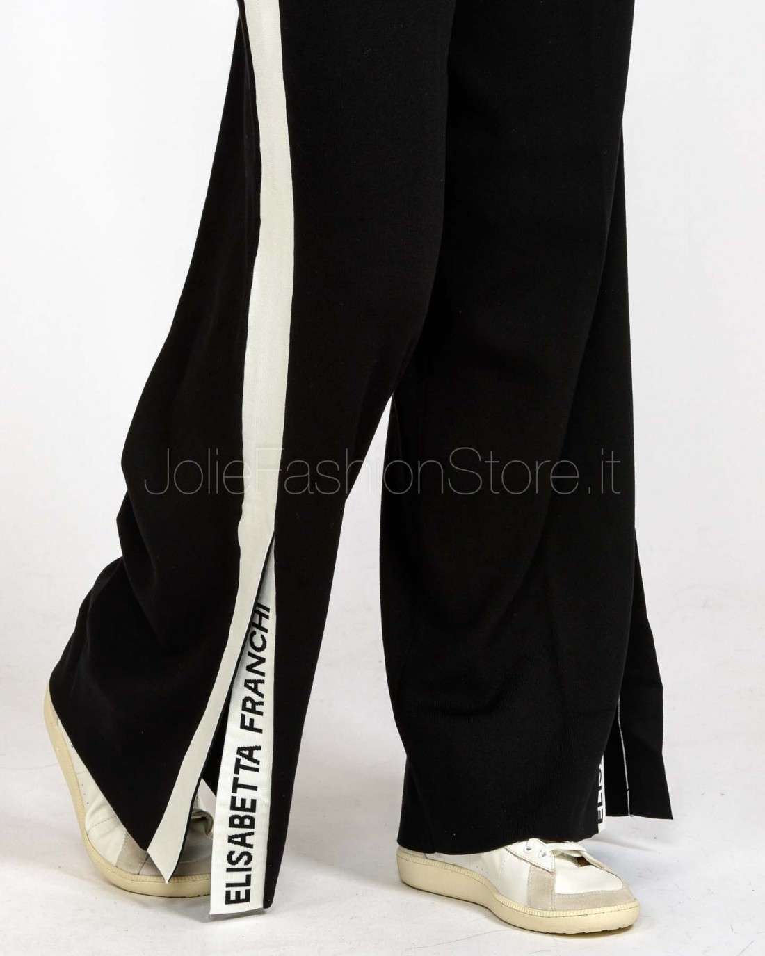 Elisabetta Franchi Pantalone Con Bande Lucide Nero/Milk