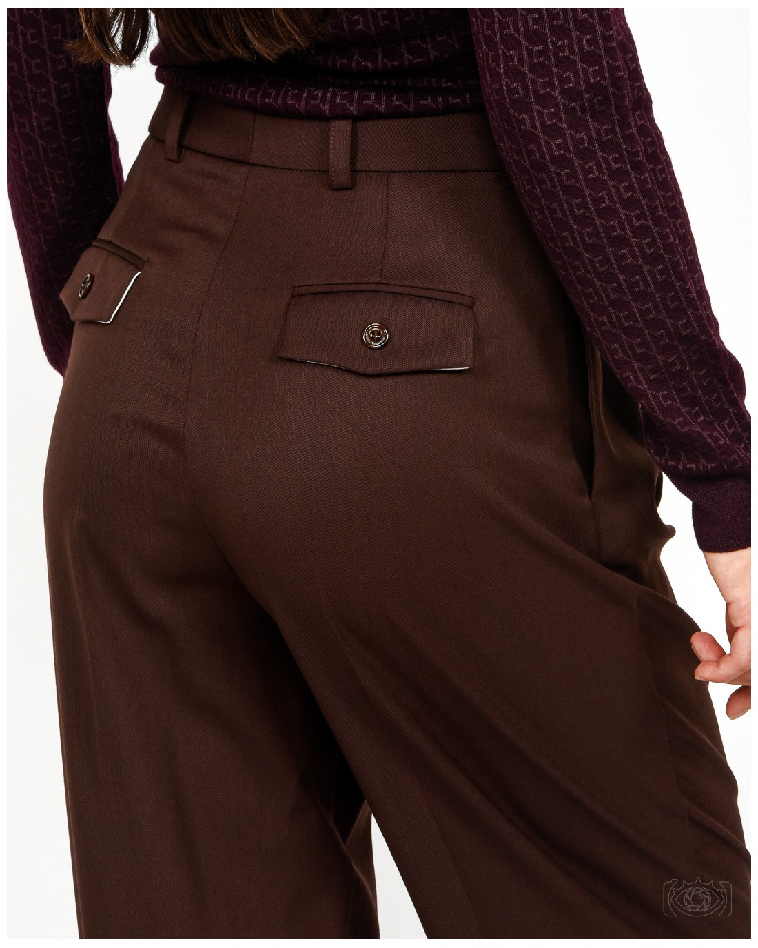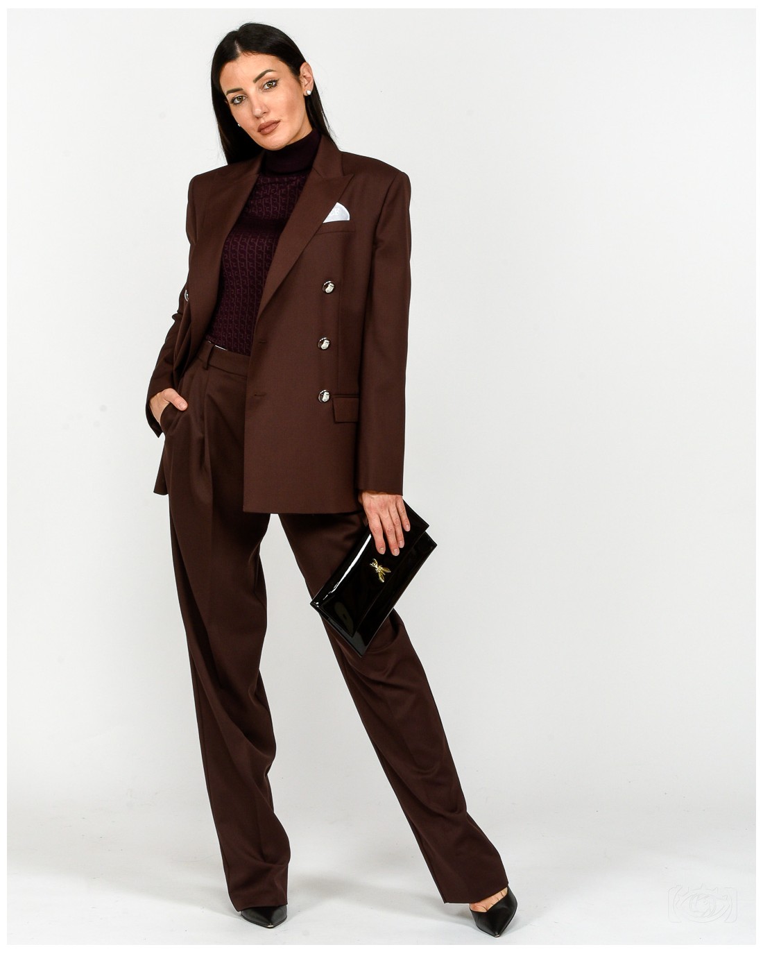Elisabetta Franchi Giacca Doppiopetto In Fresco Lana con Bottoni Smaltati Coffee