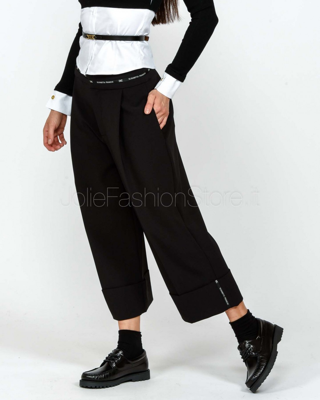 Elisabetta Franchi Maglia in Viscosa e Popeline di Cotone Con Cinturino